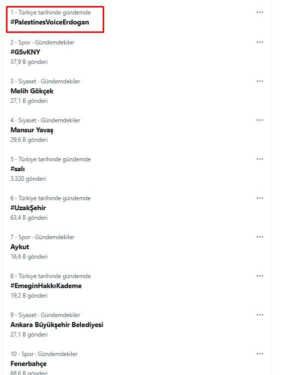 Başkan Recep Tayyip Erdoğan, BM kürsüsünde Gazze için tarihi açıklamalarda bulundu. Açıklamalar öncesinde X platformunda #PalestinesVoiceErdogan etiketi dünya gündeminde trend topic (TT) oldu.