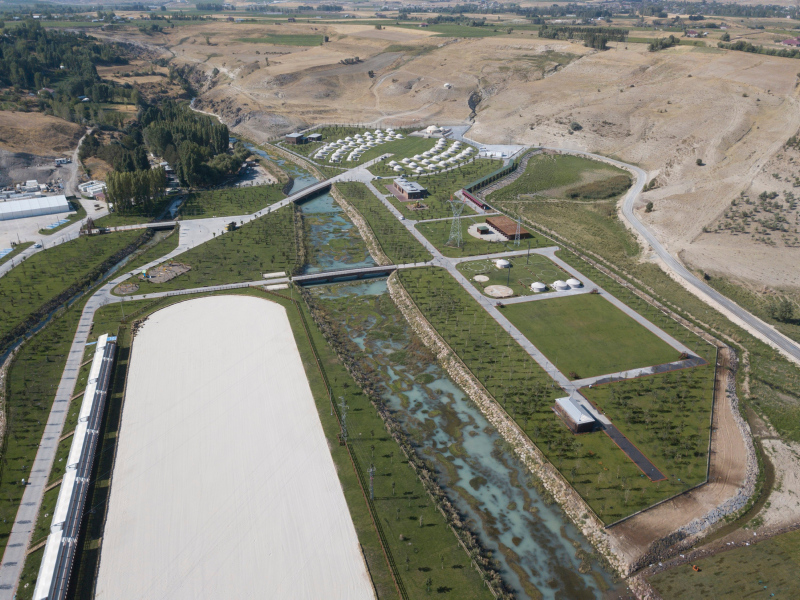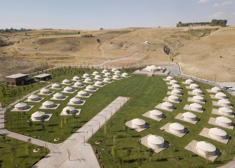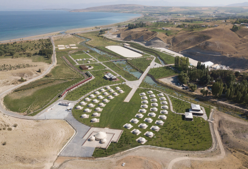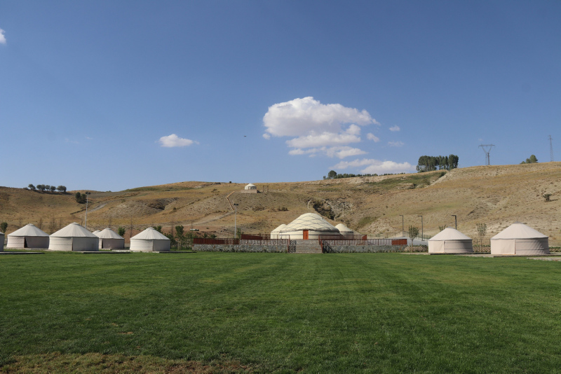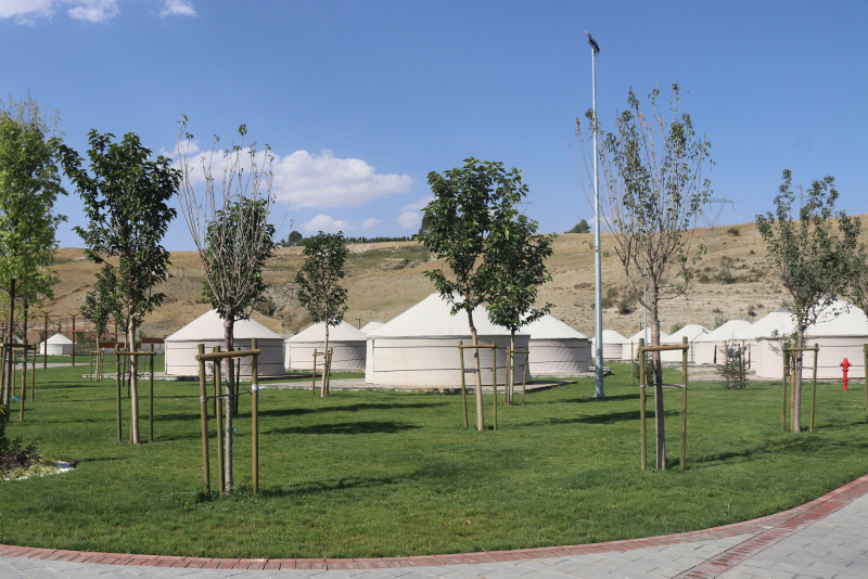 Ahlat'ın Çarho mevkiinde yapılan 400 bin metrekare alan üzerindeki millet bahçesinin 135 bin metrekaresi uygulama alanı olarak kullanılacak. Millet Bahçesi içinde 50 çadırdan kurulan 1071 Sultan Alparslan Ahlat...
