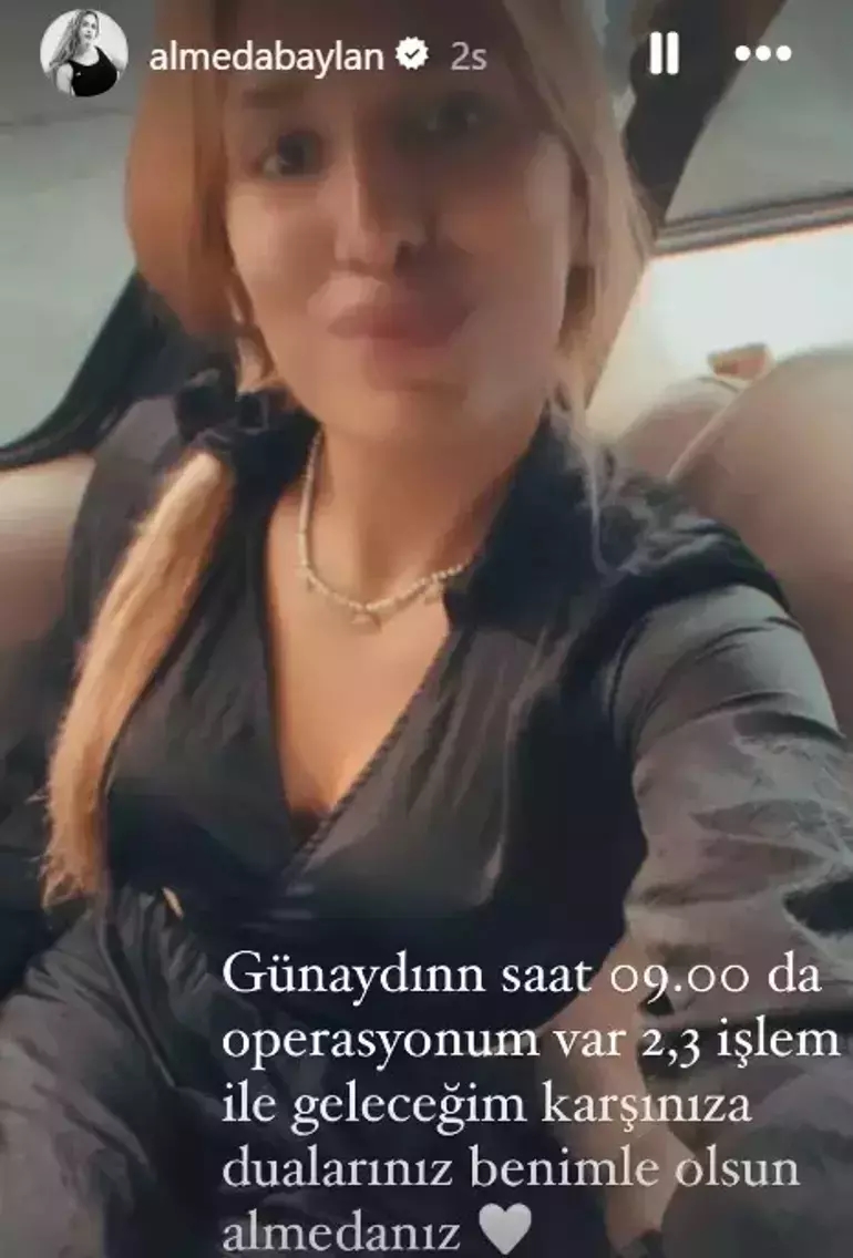 Sosyal medyayı aktif olarak kullanmaya başlayan Almeda Baylan, ''Günaydın. Saat 09.00'da operasyonum var. 2-3 işlem ile geleceğim karşınıza dualarınız benimle olsun Almeda'nız'' notuyla ameliyat olacağını duyurmuştu.