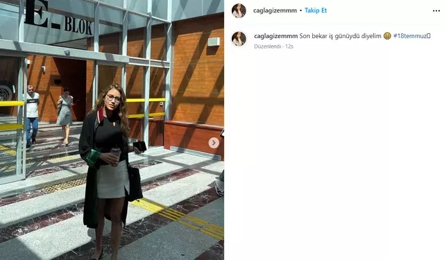 Çağla Gizem Şahin, geçtiğimiz günlerde adliyeden yapığı paylaşımda "Son bekar iş günü" diyerek 18 Temmuz 2023 tarihini işaret etti.