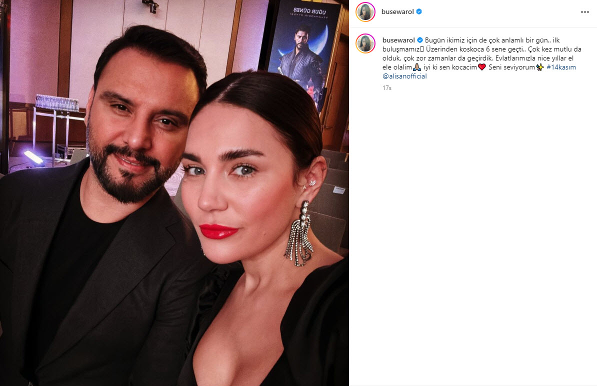 Buse Varol kendi sayfasında bir paylaşım daha yaparak, "Bugün ikimiz için de çok anlamlı bir gün. İlk buluşmamızın üzerinden koskoca 6 sene geçti. Çok kez mutlu da olduk, çok zor zamanlar da geçirdik. Evlatlarımızla nice yıllar el ele olalım. İyi ki sen kocacım❤️ Seni seviyorum" dedi.