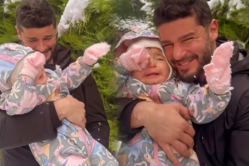 Sosyal medyayı aktif kullanan yakışıklı oyuncu, kızı Mira Milena ile birlikte kar yağışının tadını çıkardı.