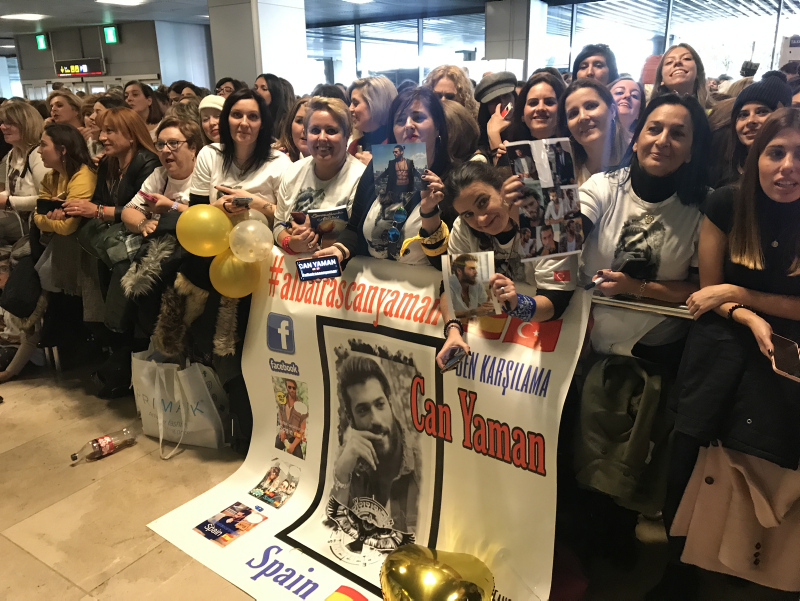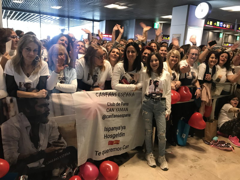 İspanyolca ve Türkçe "Hoşgeldin", "Sen en iyisinin" yazılı pankartlar taşıyan Yaman hayranları, Facebook'ta 5 ay önce açtıkları "Can Yaman hayranları" sayfasının şimdiden 8 bin üyesi olduğunu belirtti. Bu arada Yaman hayranlarının sayılarının çok fazla olması nedeniyle havalimanındaki özel güvenlikçilerin yanı sıra İspanya ulusal polisi ve jandarma da takviye olarak geldi.