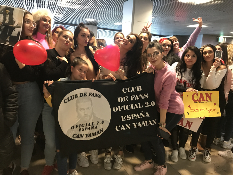 Can Yaman'ın İspanyol hayranlarından Cristina, "Asturias, Cadiz, Valensiya, İspanya'nın her yerinden yüzlerce kişi Can Yaman'ı görmek için buraya geldi, onu çok seviyoruz. Biz dört arkadaş havalimanında sabahladık, 19 saattir bekliyoruz." ifadelerini kullandı. "Alicante'den sabah çok erken yola çıkıp 6 saat araba kullanarak geldim." diyen Maria ise tek arzusunun sadece oyuncu Can Yaman'ı görmek olduğunu söyledi.