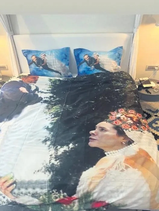 Tursan ve Sıracı için komik düğün görselleri yaptırıp bir nevresim takımına bastırdı. Hediyeyi gören ikili, kahkahaya boğuldu.