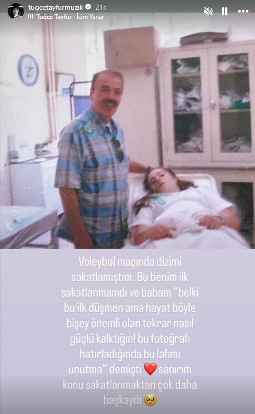 Babası Ferdi Tayfur ile hastanedeki bir karesini Instagram'dan takipçileriyle paylaşan Tayfur, yazdıklarıyla da görenleri duygulandırdı.