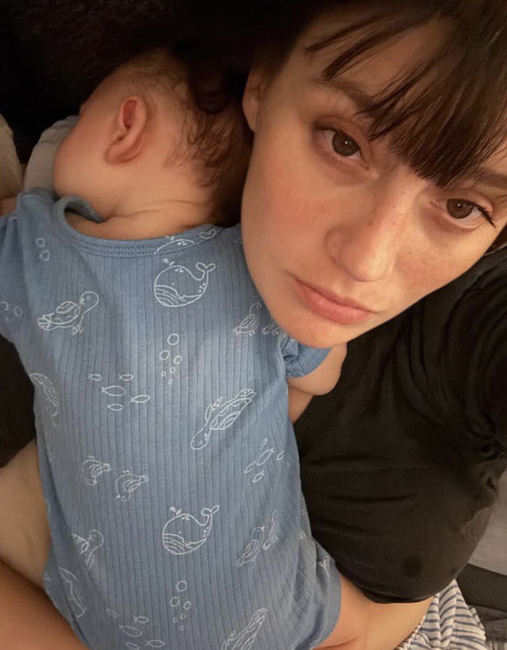 Peş peşe birçok fotoğraf paylaşan Karaca, "Yeni hayatımızın son 3 ayı. Bol sütlü, tükürük mendilli, pışpışlamaktan baş dönmeli" notunu düştü.