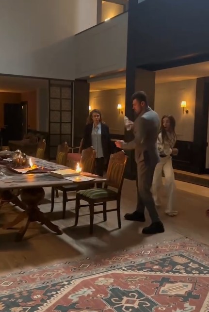 Dizide yemek masasını ve ardından evi yakan sahnelerin kamera arkası görüntülerini paylaşan Tan'ın videosu kısa sürede viral oldu.