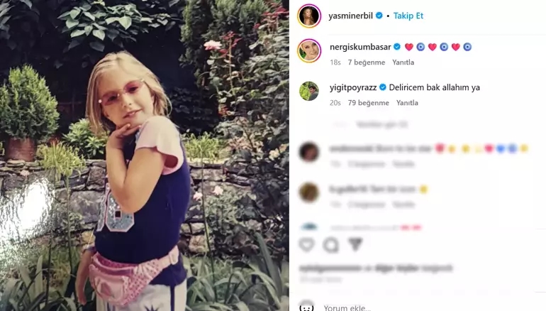 Instagram hesabından çocukluk halini paylaşan Yasmin'in fotoğrafına takipçilerinin yanı sıra annesi Nergis Kumbasar ve sevgilisi Yiğit Poyraz da tepkisiz kalamadı.