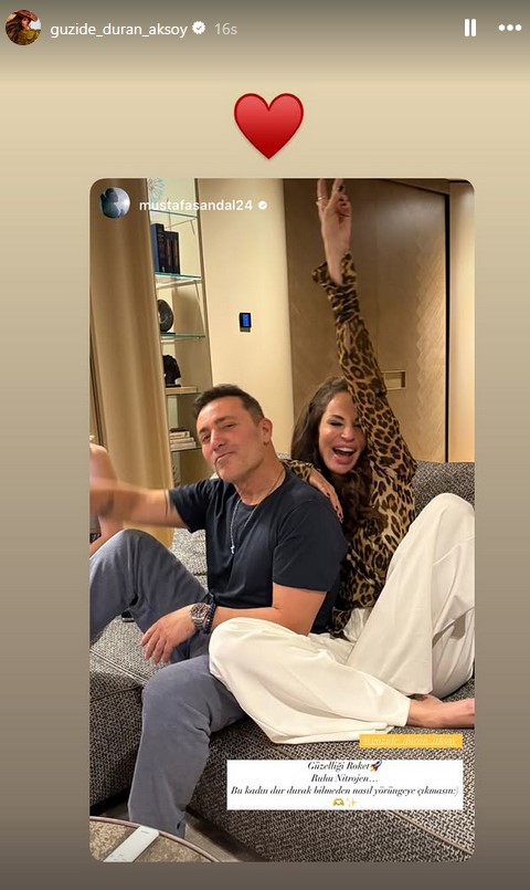 Sandal, paylaştığı karede Duran'ın güzelliğini ve enerjisini vurgulayarak; "Güzelliği roket, ruhu nitrojen... Bu kadın dur durak bilmeden nasıl yörüngeye çıkmasın?" ifadelerini kullandı.