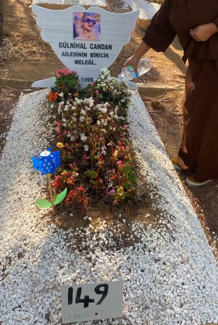 Anne Umut Candan, kaybettiği kızının yasını tutmaya devam ederken küçük kızı Su ile birlikte Nihal'in mezarını ziyaret etti.
