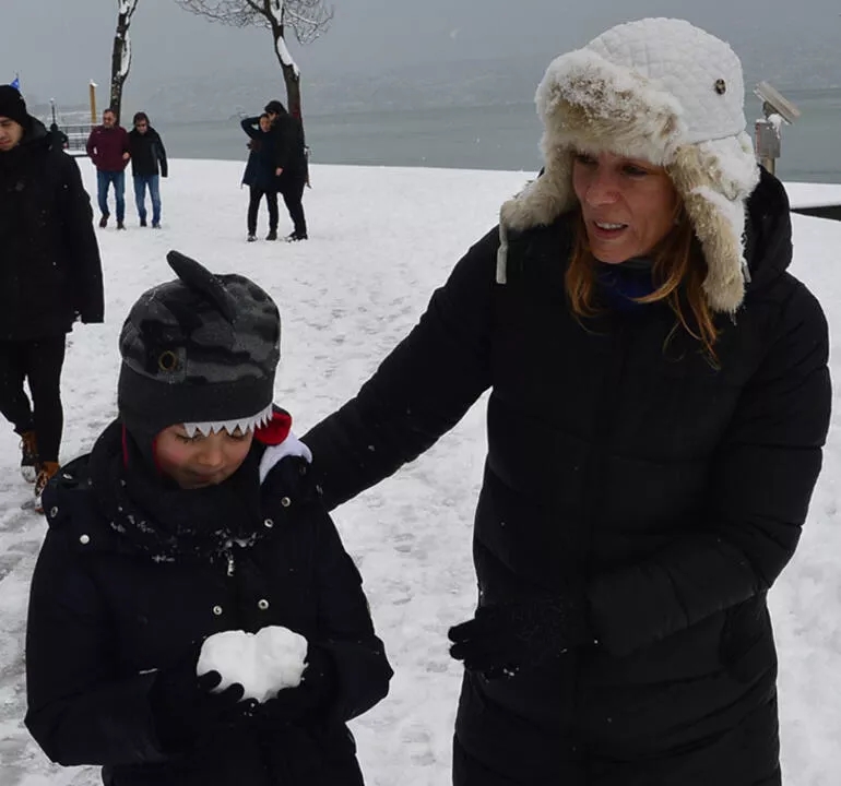 İstanbul'da etkili olan kar yağışını fırsata çeviren oyuncu Bade İşçil, soluğu sahilde aldı. Oğlu Azur ile birlikte sahil hattında yürüyüş yapıp kartopu oynayan İşçil'in eğlenceli anları kameralara yansıdı. Görüntülendiği fark eden İşcil, gazetecilerin yanına gelerek onlarla sohbet etti.
