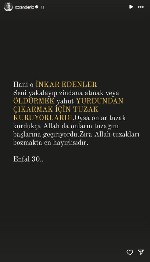 Ailesiyle yaşadığı sorunlarla gündeme gelmeye devam eden Özcan Deniz'in, annesi ve kız kardeşinin eşi Samar Dadgar'a şiddet uyguladığı iddia edildi. Bunun üzerine Deniz'in annesi Kadriye Deniz, oğlu için uzaklaştırma talebinde bulundu. Bu olayın ardından, Özcan Deniz sosyal medya yaptığı yeni paylaşımla dikkat çekti.