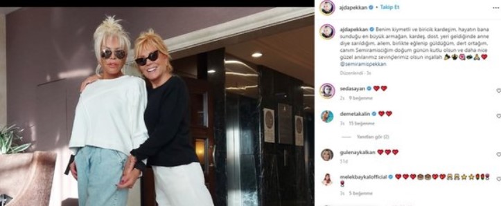 Bugün sosyal medyada bir paylaşımda bulunan Ajda Pekkan, kız kardeşi Semiramis Pekkan'ın doğum günü kutladı.