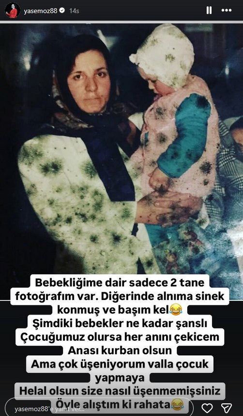 Bebekliğine ait sadece 2 fotoğrafı olduğunu belirten ünlü isim, "Ne kadar gergin bir bebekmişim. Bebekliğime dair sadece 2 tane fotoğrafım var.