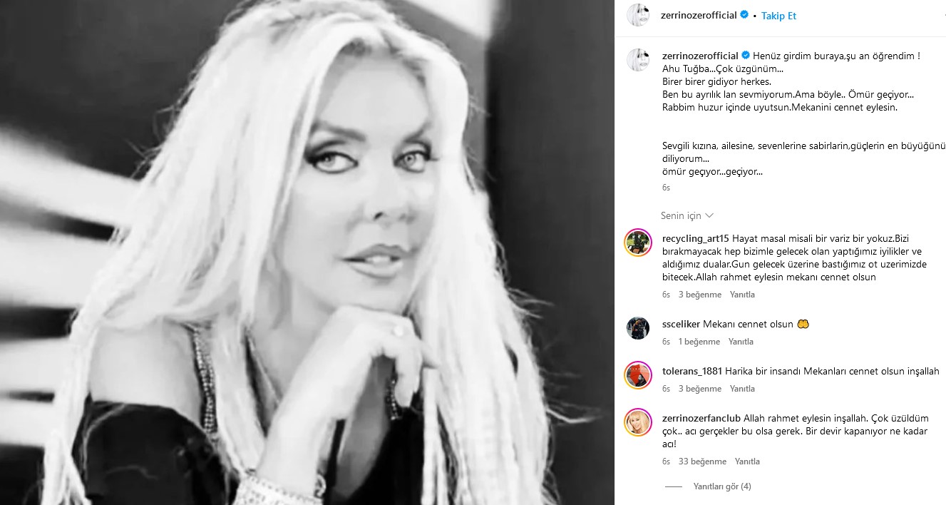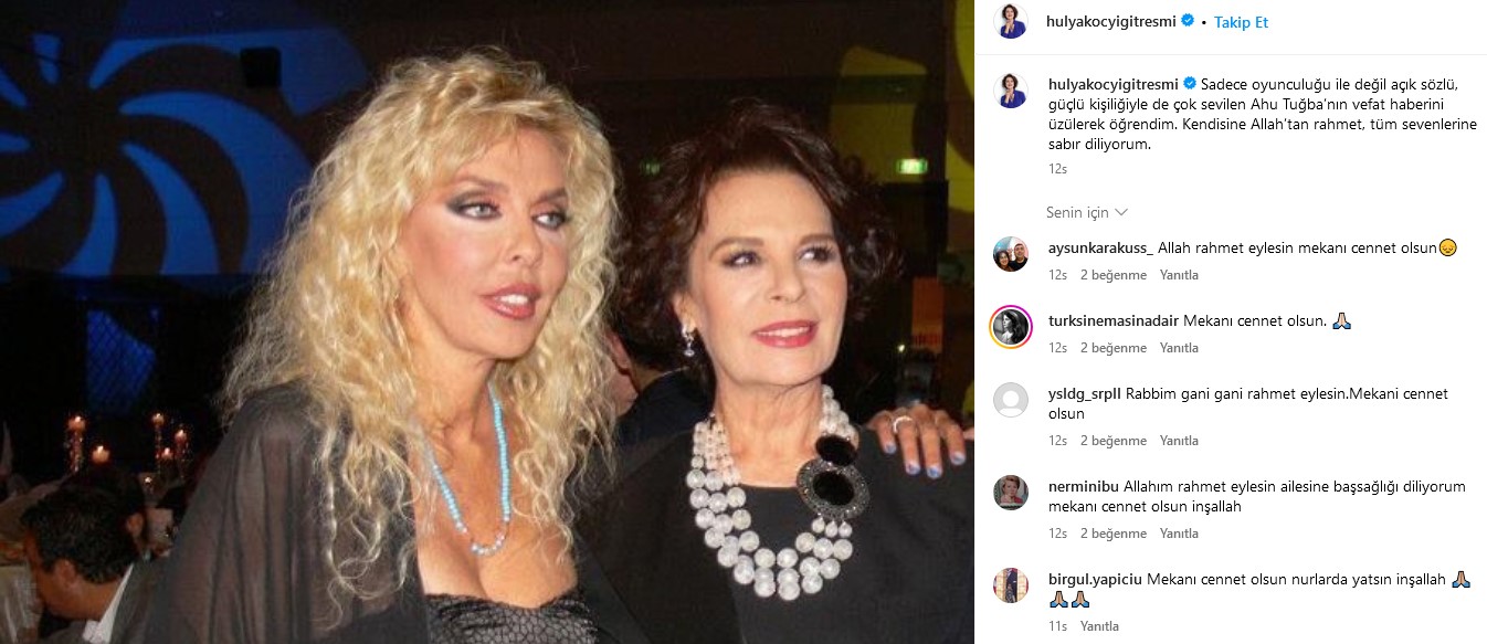 "Sadece oyunculuğu ile değil açık sözlü, güçlü kişiliğiyle de çok sevilen Ahu Tuğba'nın vefat haberini üzülerek öğrendim. Kendisine Allah'tan rahmet, tüm sevenlerine sabır diliyorum."