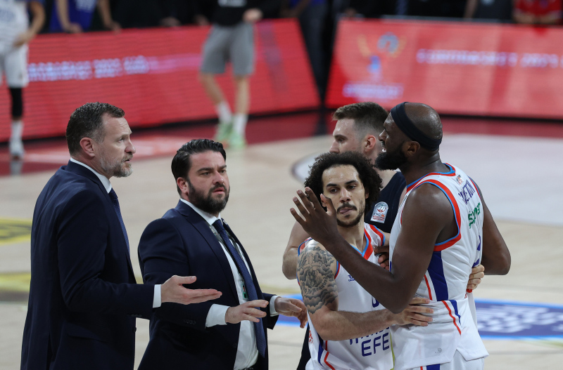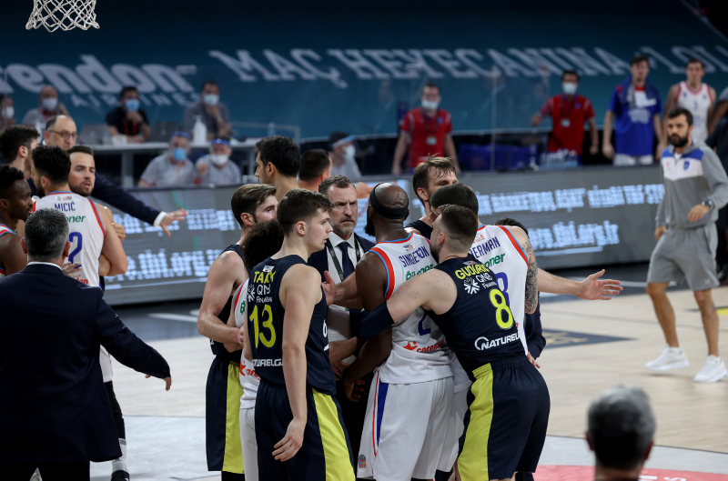 Anadolu Efes-Fenerbahçe Beko maçında kavga çıktı! 6 oyuncu...