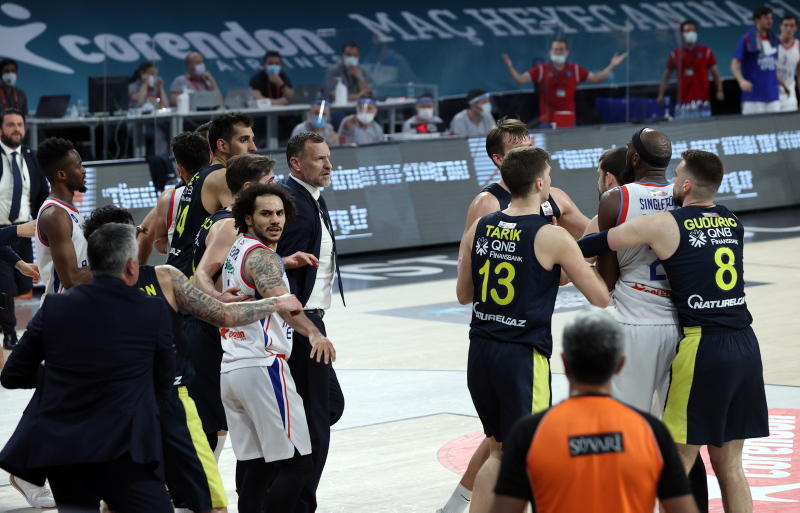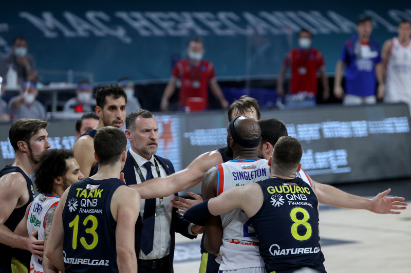ING Basketbol Süper Ligi Play-Off finali 2. maçında Anadolu Efes, sahasında Fenerbahçe Beko'yu 95-73 mağlup ederek seride 2-0 öne geçti. Karşılaşmanın son bölümünde Anadolu Efes'in ABD'li oyuncusu Chris Singleton ile Fenerbahçe Beko'nun milli basketbolcusu Melih Mahmutoğlu arasında kavga çıktı.