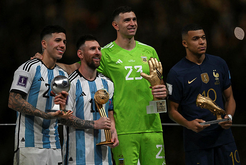2022 Dünya Kupası'nda ortaya koyduğu performans ile "Altın Eldiven" ödülünü kazanan Arjantin'in kalecisi Emiliano Martinez, törende çok büyük tepkiye yol açan tavırda bulundu.