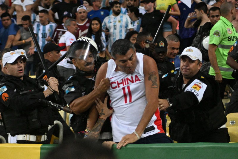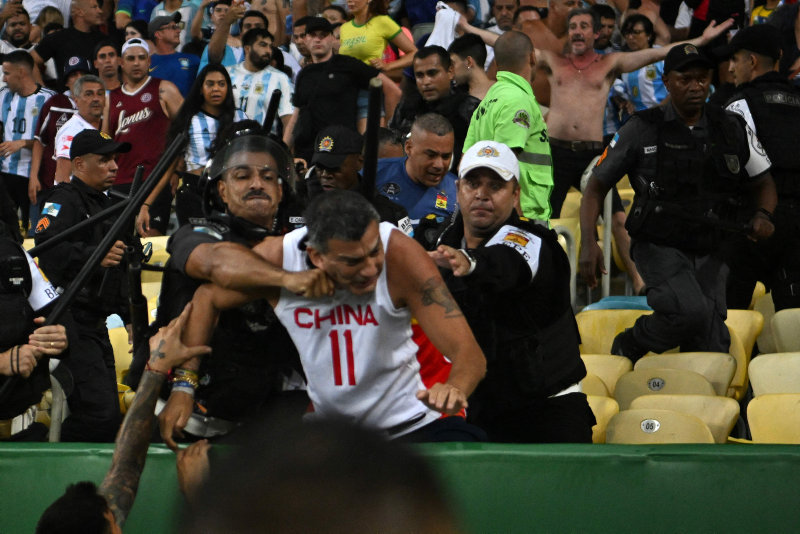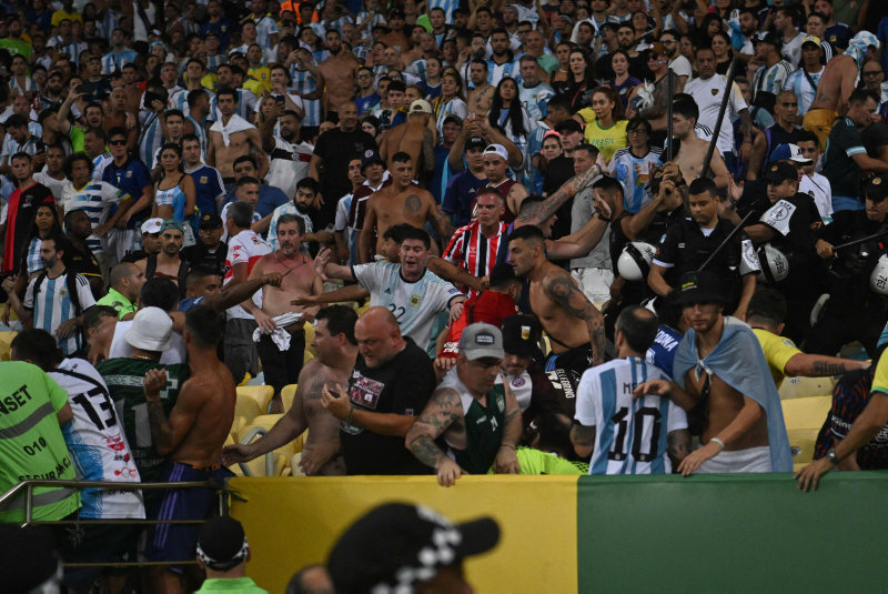 Brezilya polisinin tribünlerde çıkan gerginlik sonrası aile ve çocuk demeden Arjantin taraftarına joplarla saldırması büyük tartışma konusu oldu.