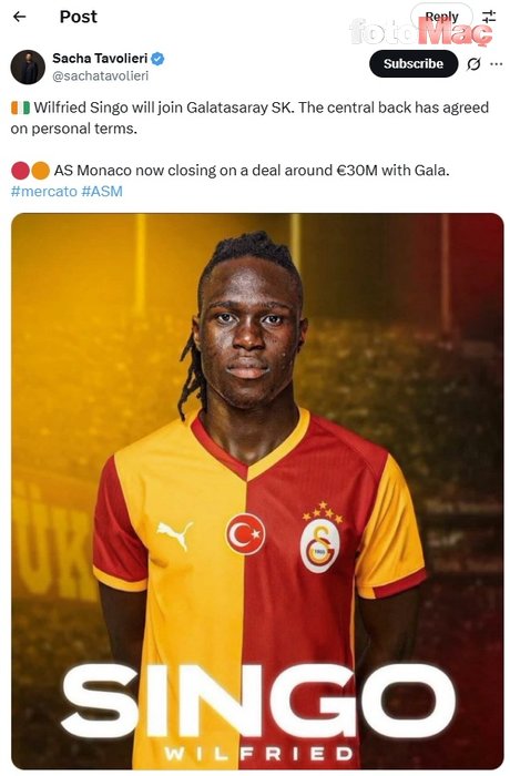 Sacha Tavolieri'nin haberine göre Wilfried Singo, Galatasaray'a oldukça yakın. 24 yaşındaki oyuncu, kişisel şartlarda sarı-kırmızılılar ile anlaşmaya vardı. Oyuncuyu İstanbul'a gelmeye ikna eden Galatasaray, Monaco ile yaptığı görüşmelerde de sona yaklaştı.