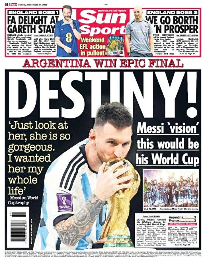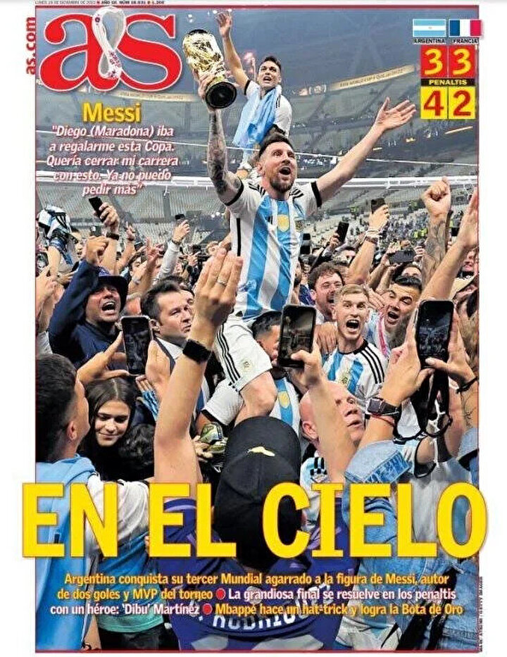 Katar'da düzenlenen 2022 Dünya Kupası, tüm zamanların en iyi final maçına sahne oldu. Arjantin güçlü rakibi Fransa'yı 90 dakikası 2-2, uzatma devresi 3-3 biten finali penaltı atışlarında devirdi. Kupa seremonisinde Katar Kralı tarafından giydirilen kıyafetle kupayı kaldıran Messi'nin o anları büyük ses getirdi.