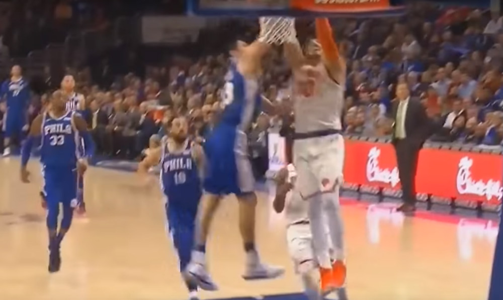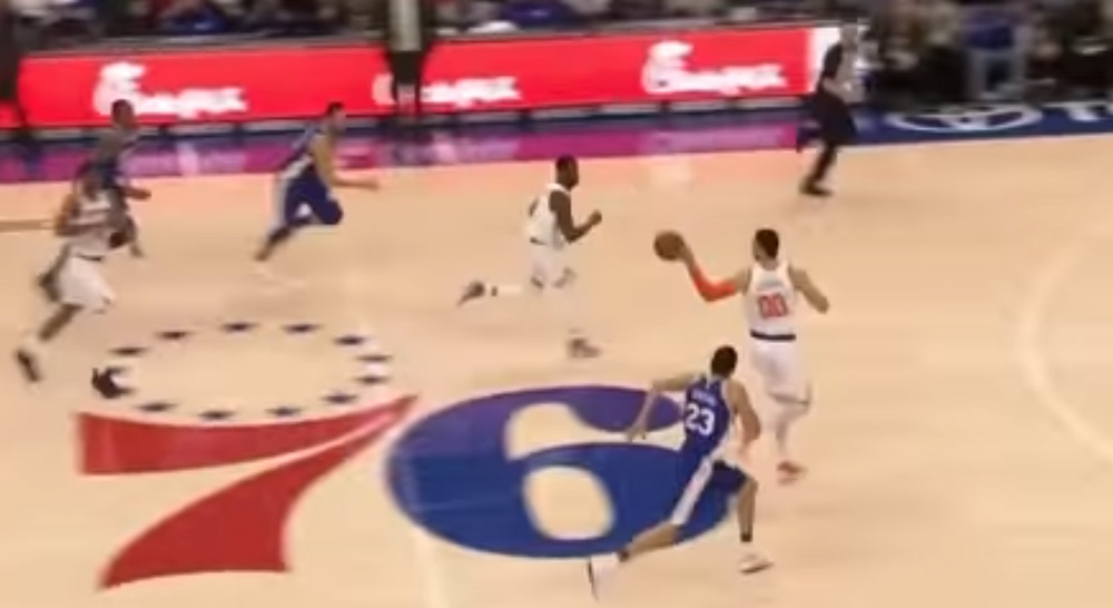 NBA'de Philadelphia 76ers'ın New York Knicks ile karşılaştığı mücadelede sosyal medyanın çok konuştuğu bir pozisyon yaşandı.