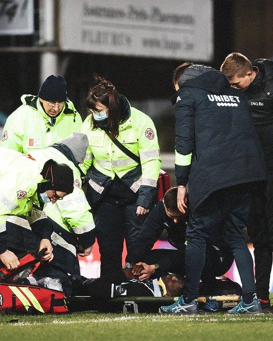 22 yaşındaki futbolcu, müsabakanın 46. dakikasında rakip oyuncu Dante Vanzeir ile girdiği ikili mücadele sonrasında adeta ölümden döndü.