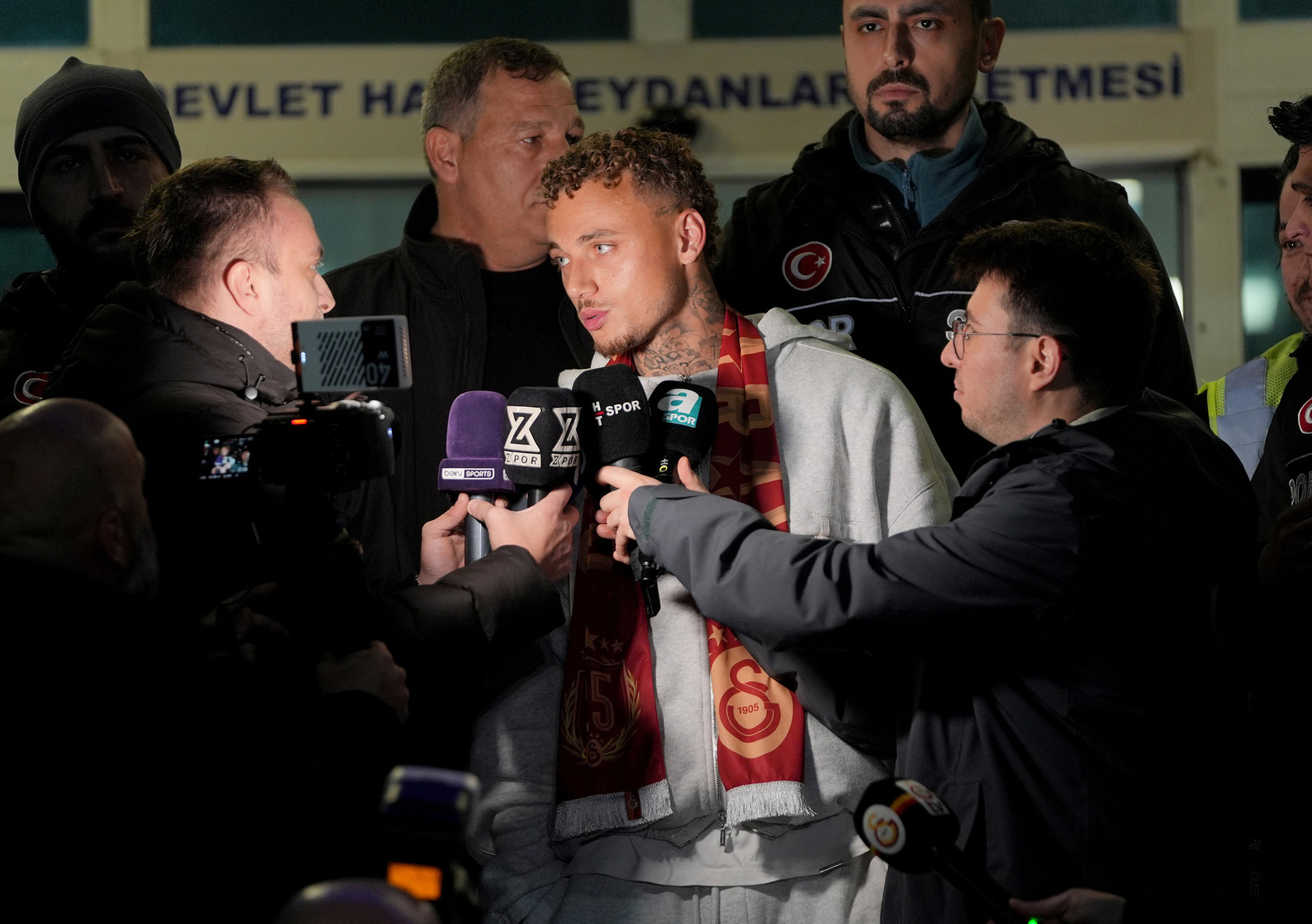 Süper Lig'de Fenerbahçe ile şampiyonluk yarışını sürdüren ve devre arası transfer döneminin sessiz takımı Galatasaray'da sıcak saatler yaşanıyor. Sarı kırmızılıların yeni transferi Noa Lang, İstanbul'a geldi. Lang havalimanında Galatasaray atkısı takıp açıklamalarda bulundu.