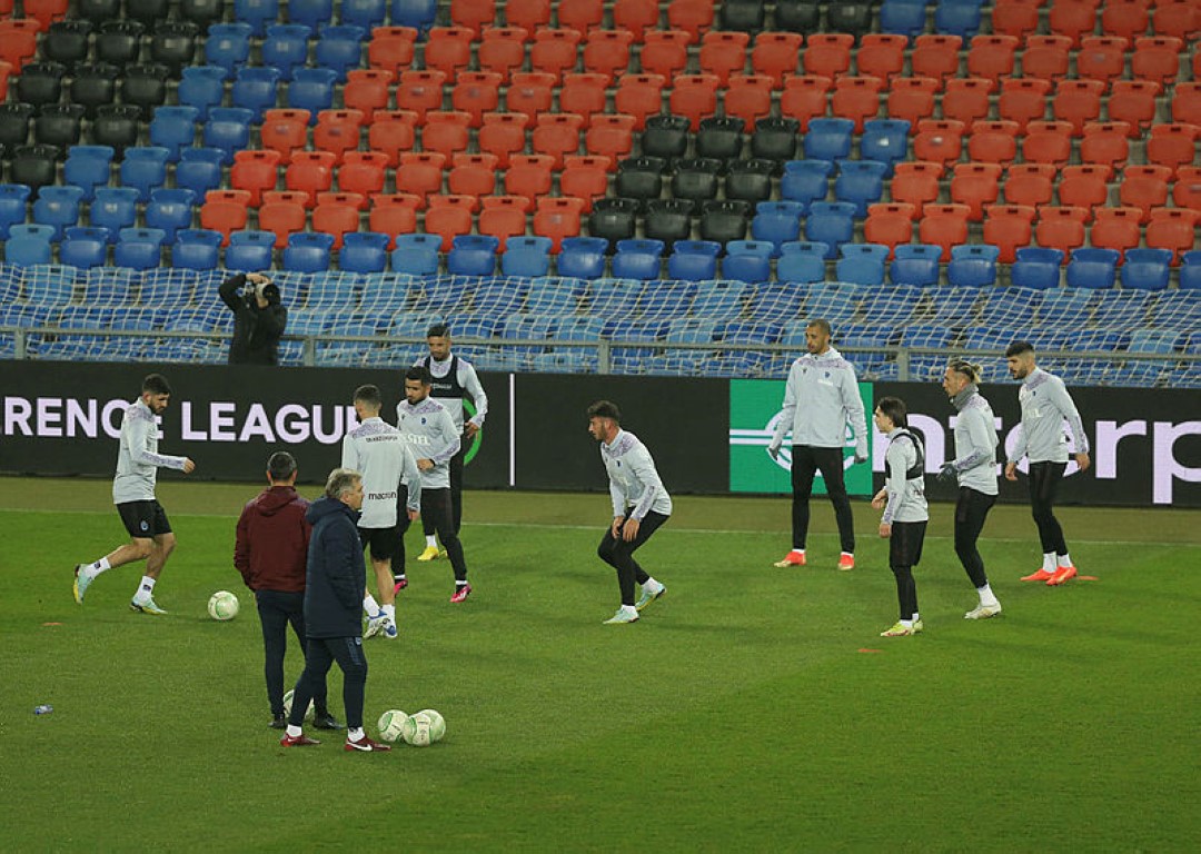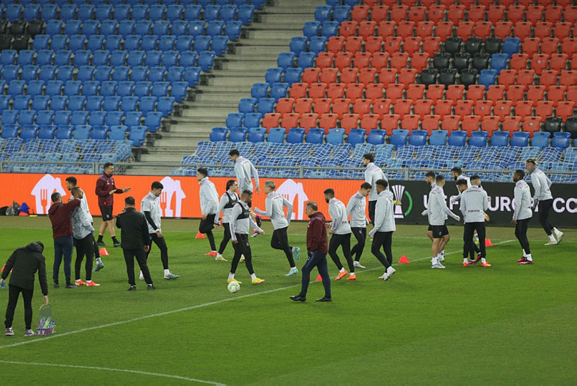 Bordo-mavililer, teknik direktör Abdullah Avcı yönetiminde, maçın oynanacağı St. Jakob-Park'ta, ilk 15 dakikası basın mensuplarına açık bir antrenman gerçekleştirdi.