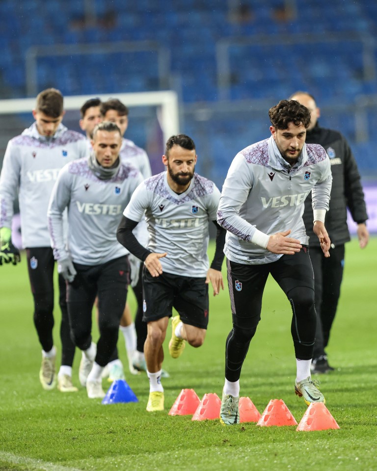 Antrenman öncesinde orta sahada toplanan bordo-mavili takım, birlikte fotoğraf çektirdi. İdmanın 15 dakikalık bölümünde bu oyuncular, ısınmanın ardından pas çalışması yaptı.