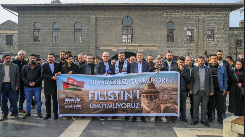 Diyarbakır, Şırnak ve Mardin'de düzenlenen basın açıklamalarıyla İsrail'in Gazze'ye yönelik saldırıları protesto edildi. Diyarbakır'da Milli İrade Platformu öncülüğünde, Türkiye Gençlik Vakfı (TÜGVA) organizasyonuyla merkez Sur ilçesindeki Ulu Cami önünde toplanan katılımcılar, "Sinmiyoruz, susmuyoruz, Filistin'i unutmuyoruz" yazılı pankart açtı.