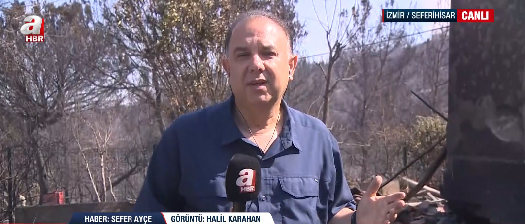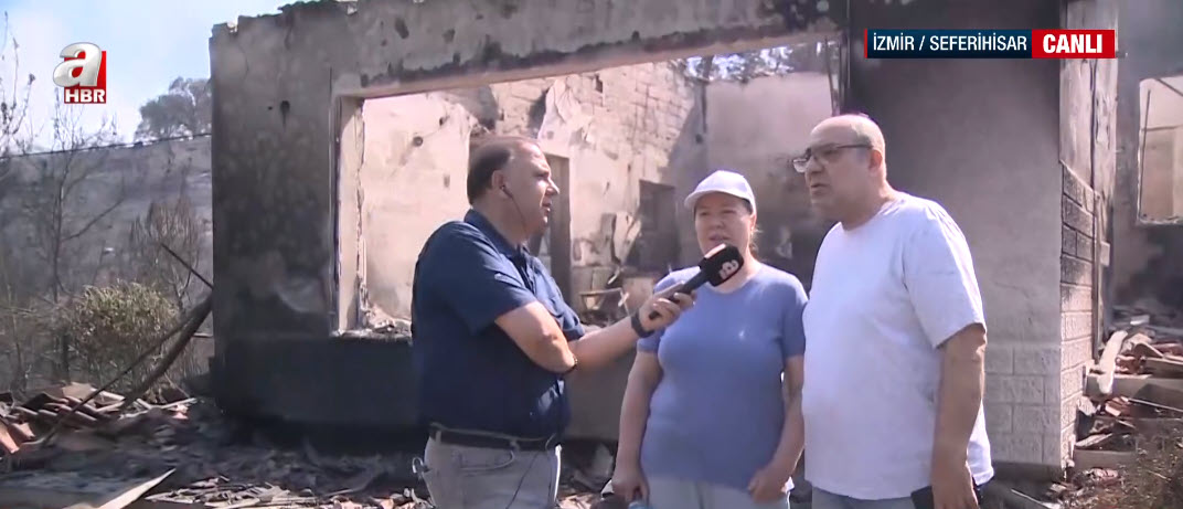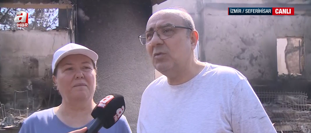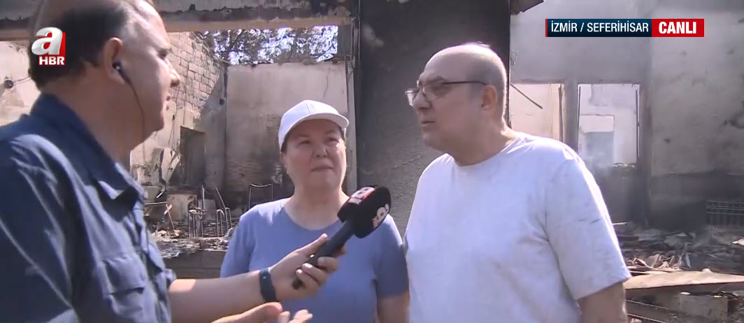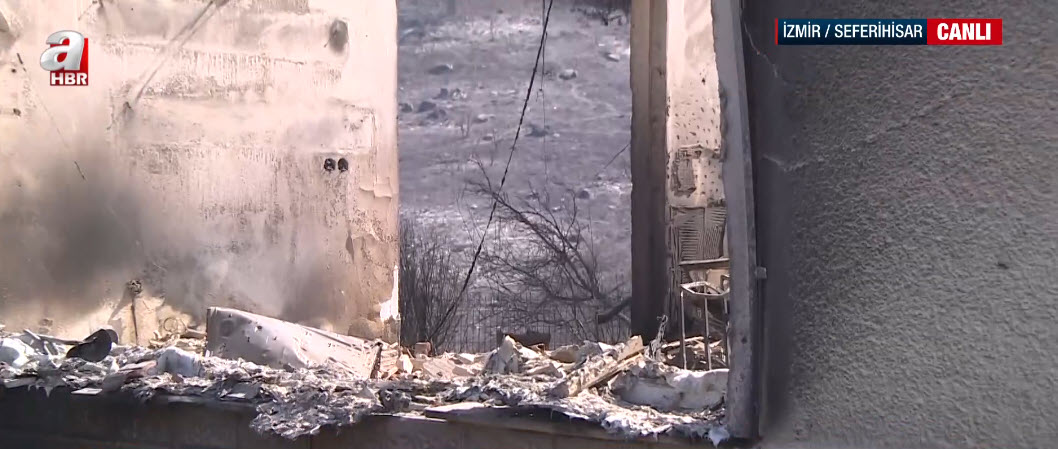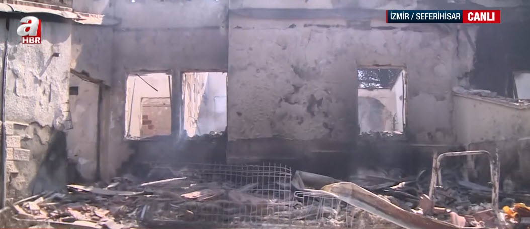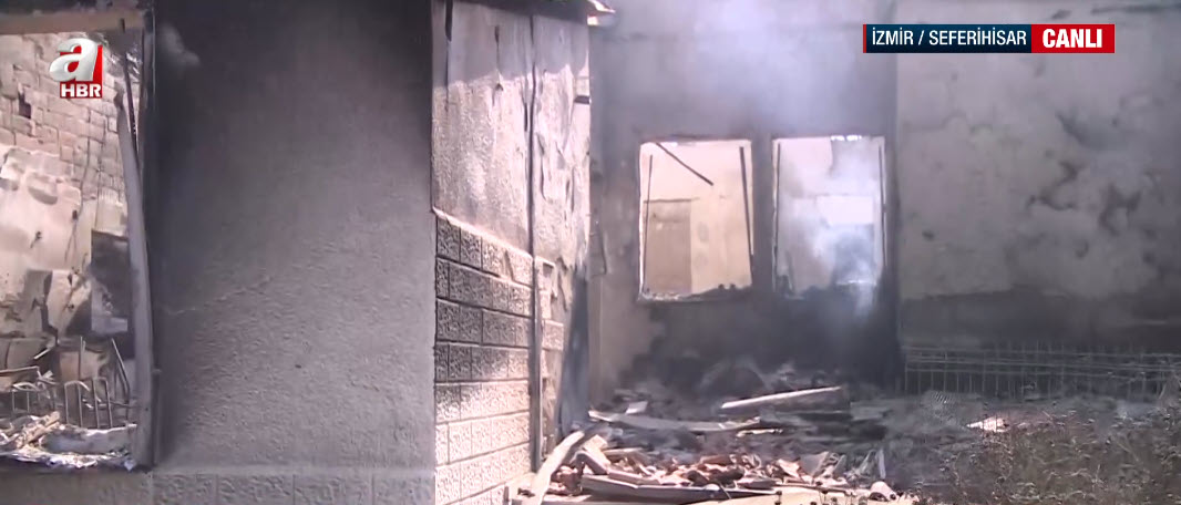 İzmir Seferihisar'da hasarın boyutu gün ağarınca ortaya çıktı. A Haber muhabiri Sefer Ayçe yangın bölgesinden detayları aktardı. 30 yıllık birikimleri kül olan aile yaşadıklarını canlı yayında anlattı.