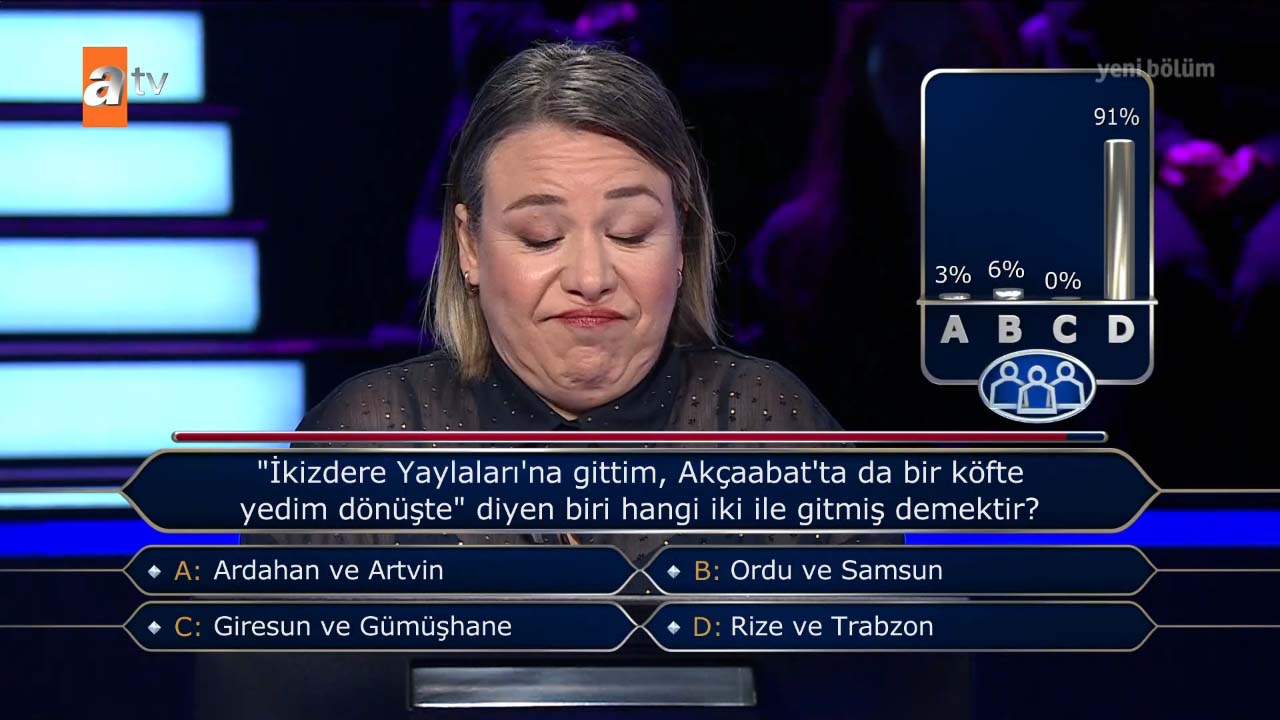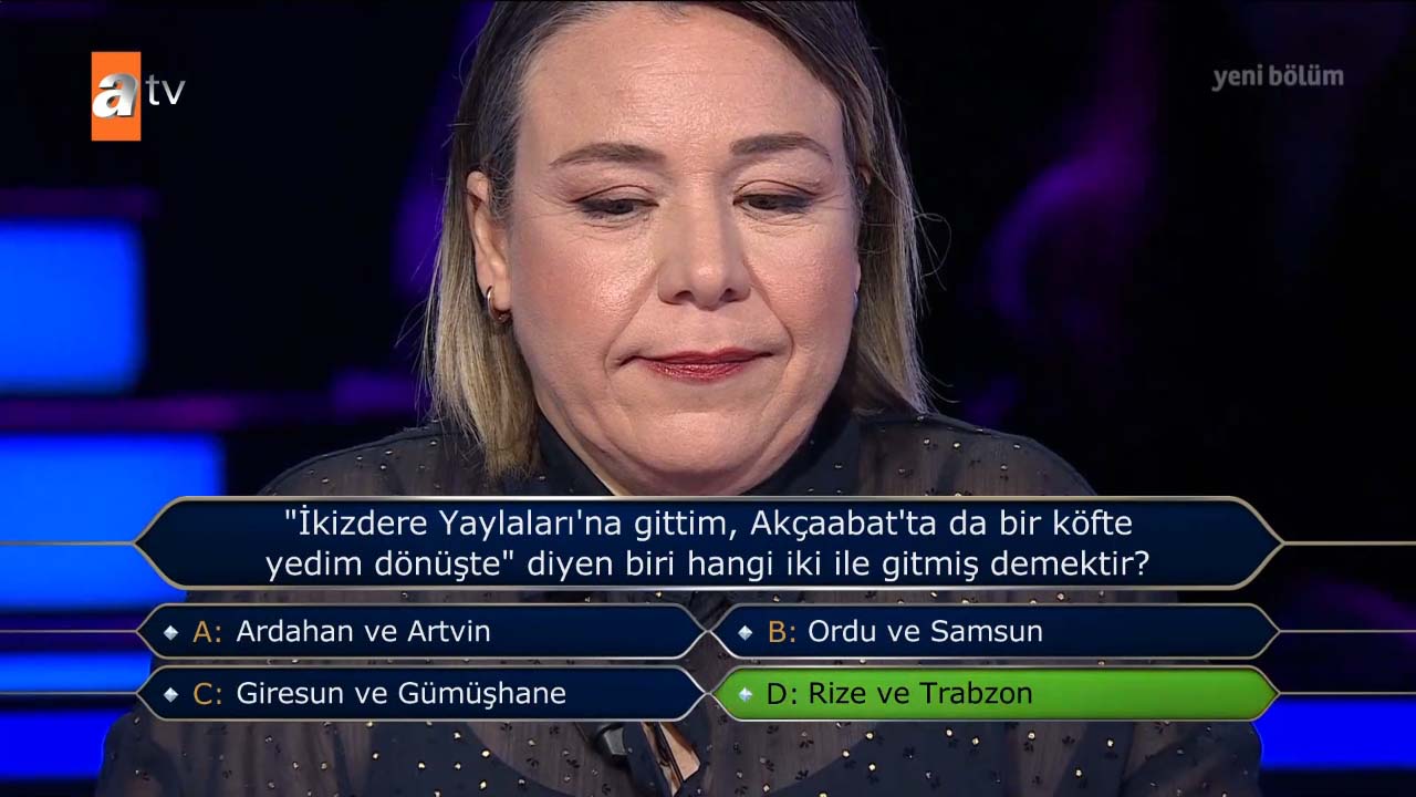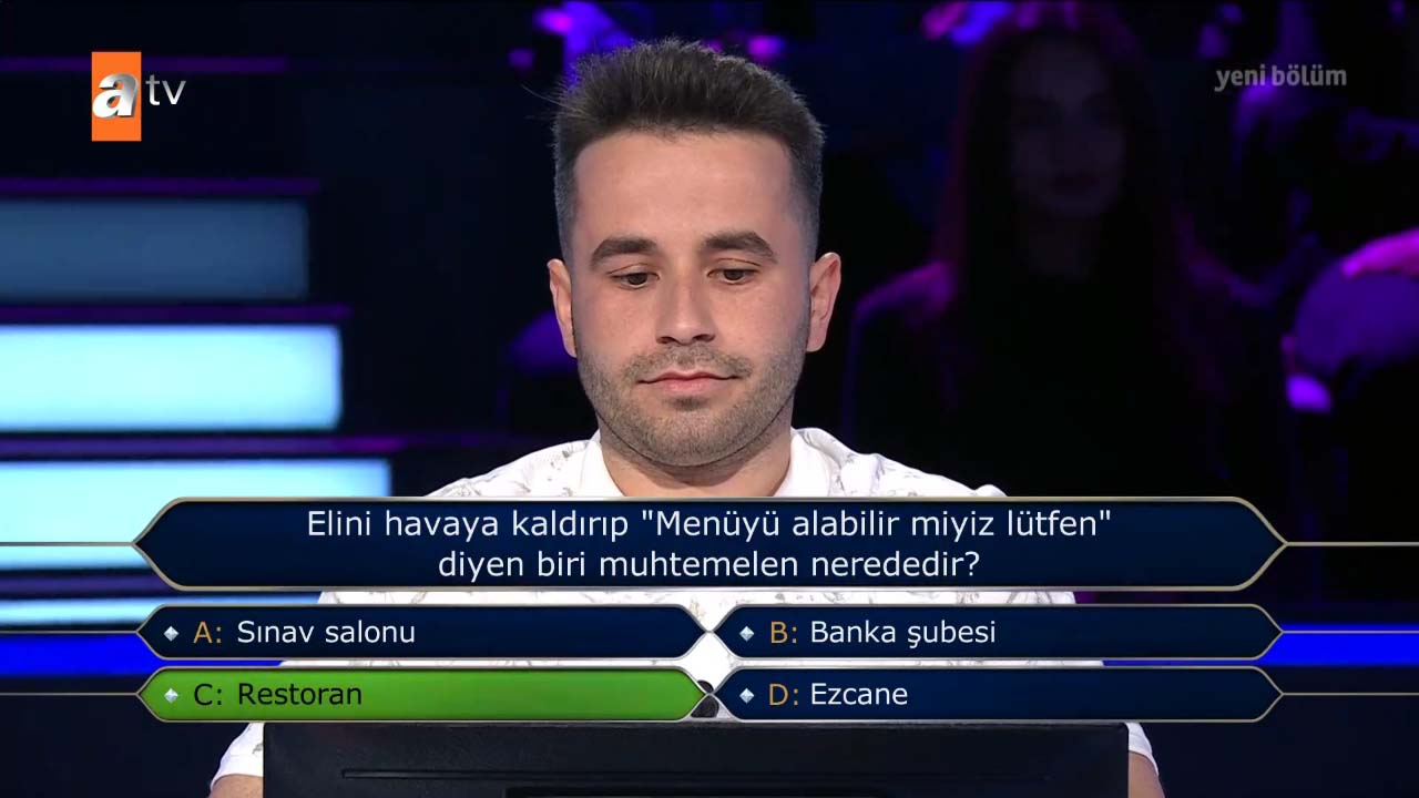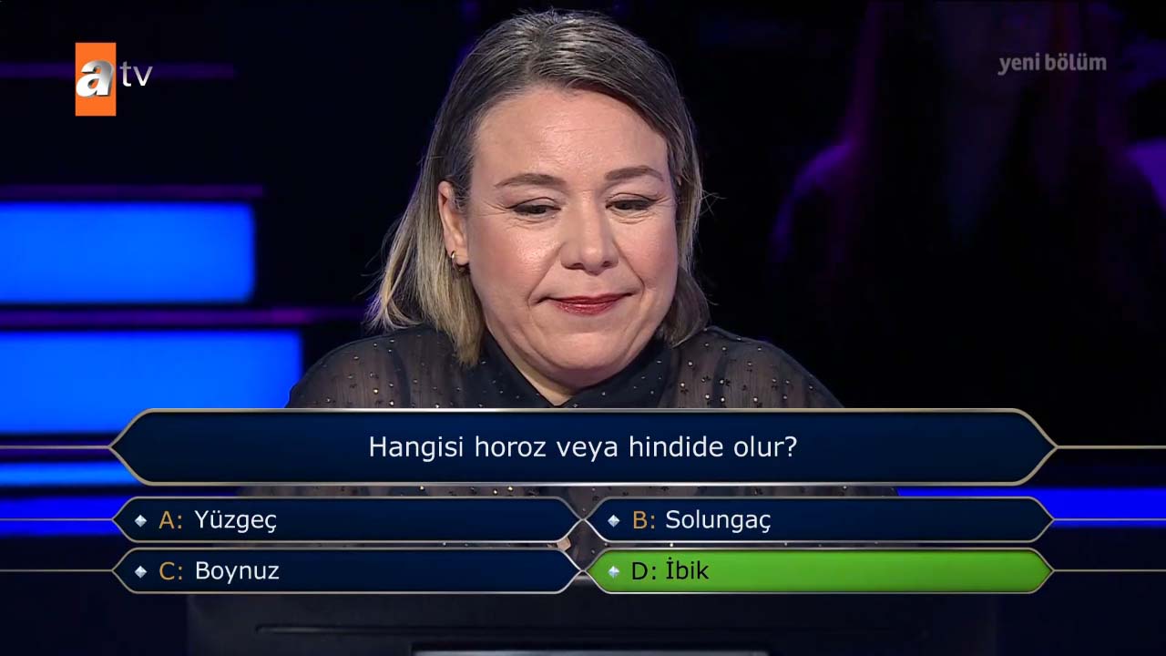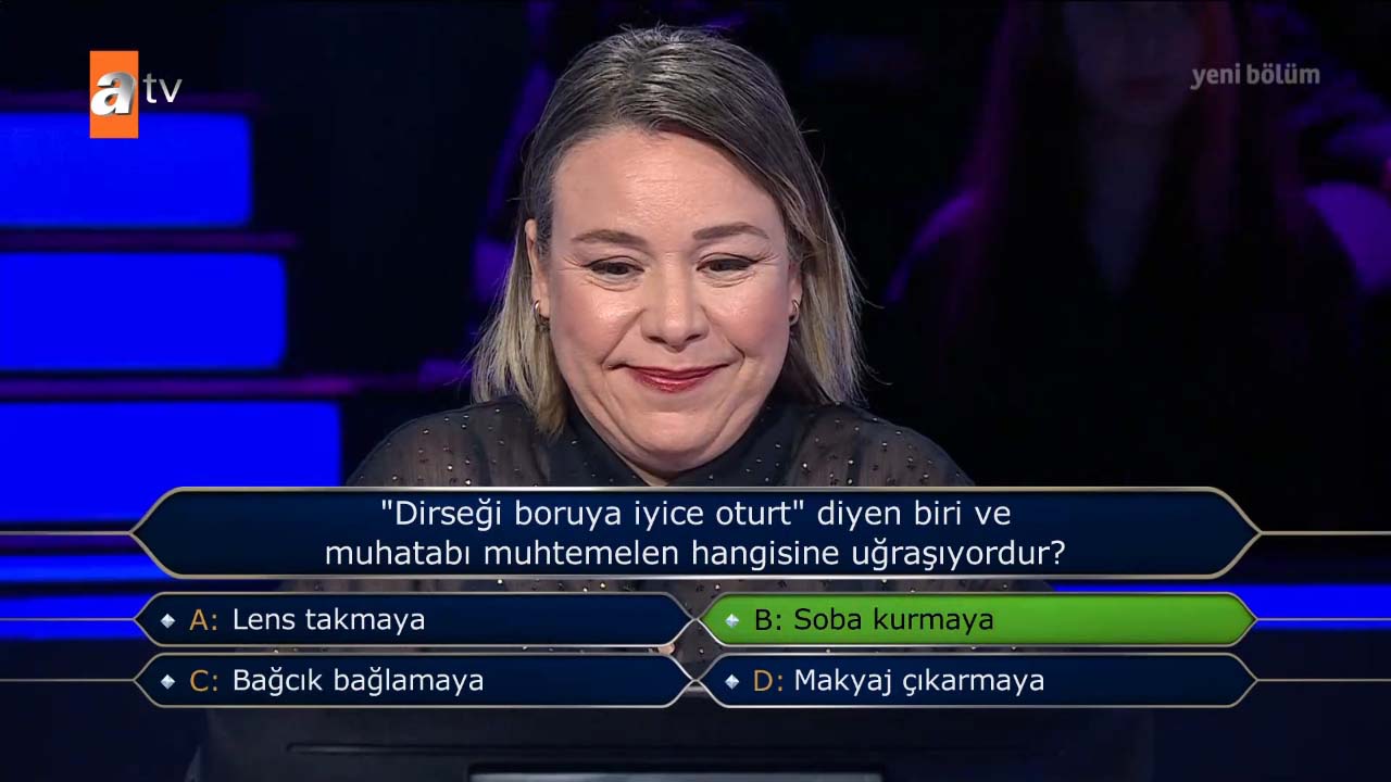 Kim Milyoner Olmak İster'de tüm jokerlerini kullanarak 400 bin TL'lik soruyu gören ve yarışmacı izleyenlere unutulmaz anlar yaşattı. 1 milyon TL'lik zorlu zirveye adım adım ilerleyen yarışmacı "1990 yapımı 'Aşk Filmlerinin Unutulmaz Yönetmeni' filminin afişinde, filmin başrol oyuncusu Şener Şen hangisinin üzerine binmiş şekilde tasvir edilir?" sorusunda verdiği cevap ile ters köşe oldu. Doğru yanıtı veremeyen yarışmacı, usta oyuncu Kenan İmirzalıoğlu'nun "Umarım elenmezsin" temennisine rağmen 30 bin TL ile evinin yolunu tuttu. İşte o sorunun doğru yanıtı ve yarışmacının verdiği yanıt…