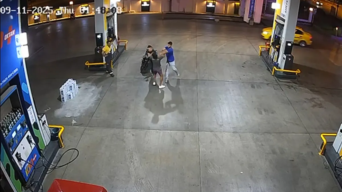 Adana'nın Yüreğir ilçesinde bir akaryakıt istasyonunda çıkan kavgada 24 yaşındaki Umut Ayyıldız'ı tek yumrukla hastanelik eden Serdar D. (24) ve Enes G. (22) tutuklandı. Olay anı istasyonun güvenlik kamerasına saniye saniye yansıdı.