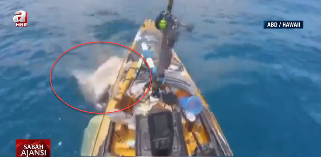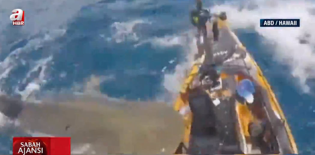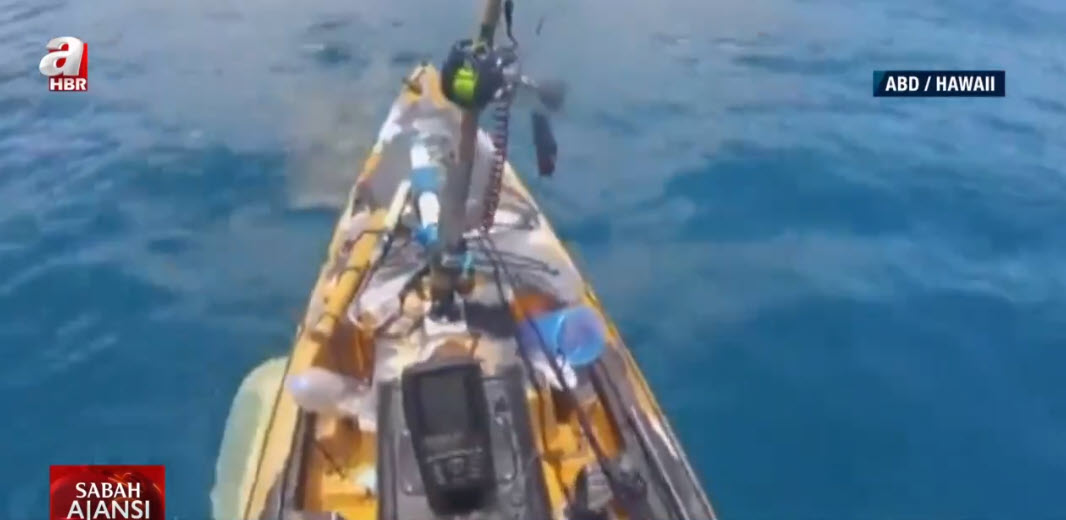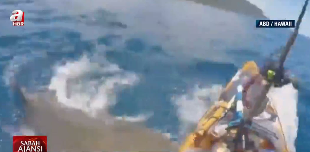 Görüntüler Amerika Birleşik Devletleri'nden... Hawaii bölgesinde Haraguchi isimli bir kişi kanosuyla balık avladığı sırada beklenmedik bir olay yaşandı.
