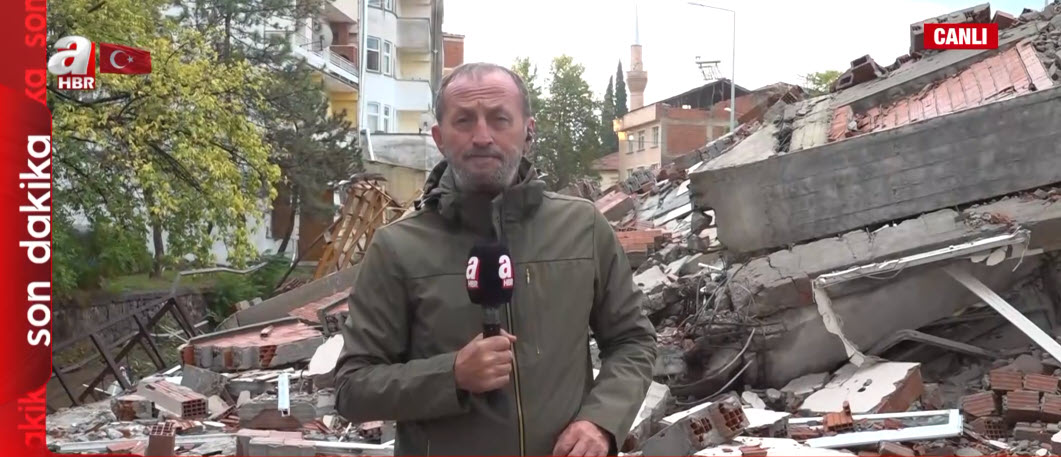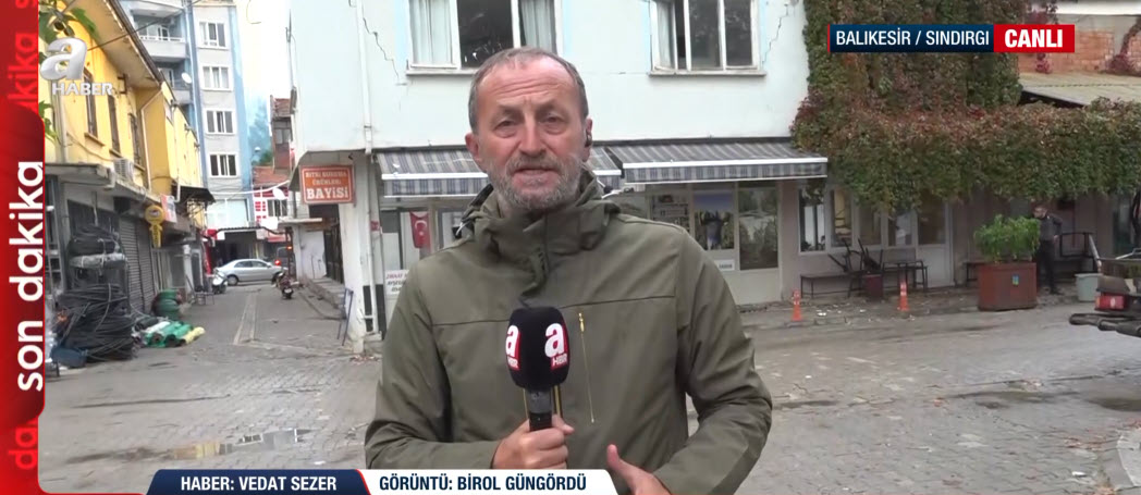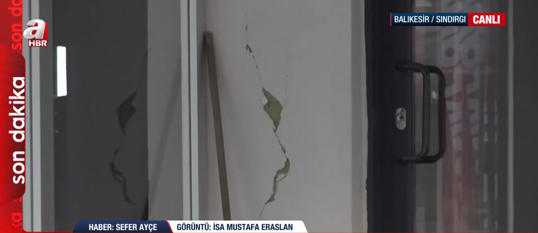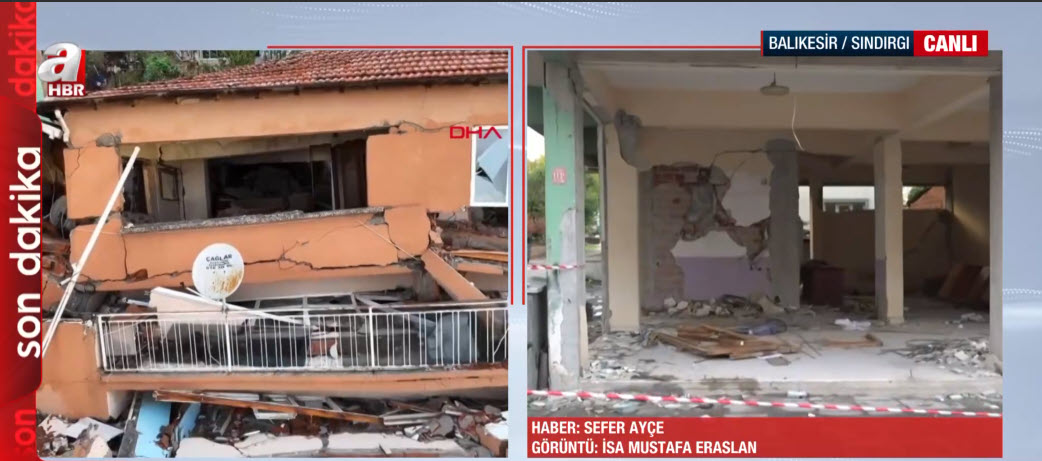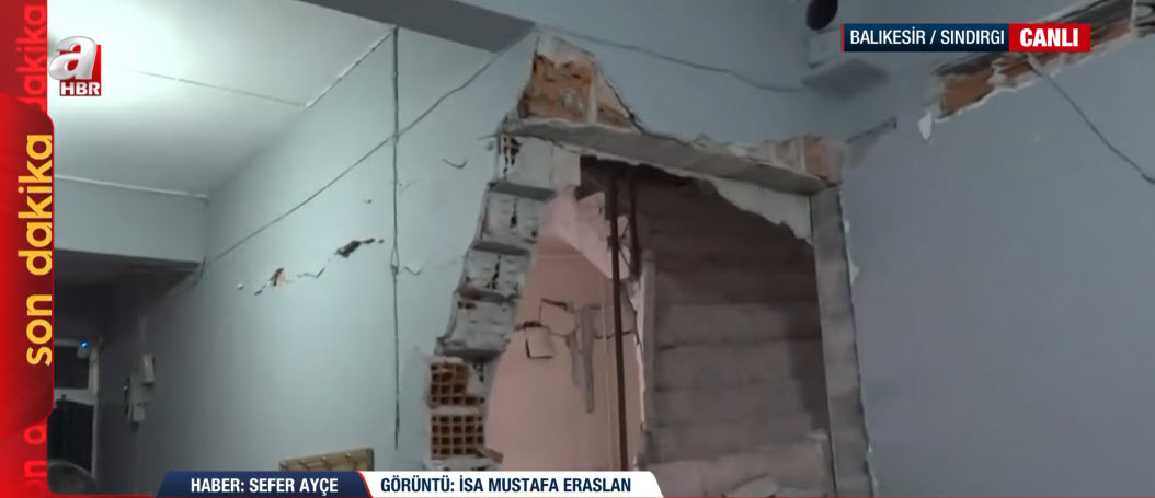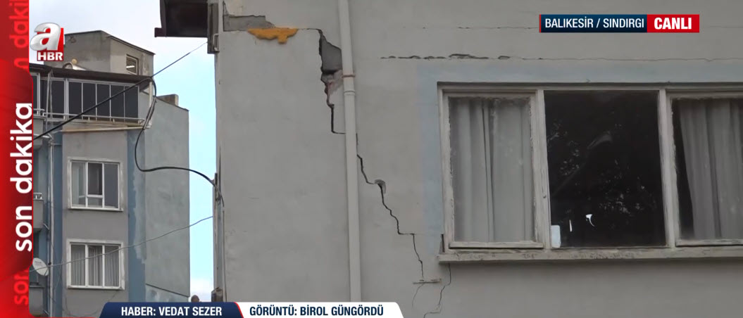 A Haber muhabiri Sefer Ayçe, "Buradaki bir apartman dairesi baktığımızda, o da bir eski bir apartman dairesi ve burada da o da boşaltılmış bir daire. Yan tarafta oturanlar var. Evet, o da işte depremin şiddetinden dolayı patlakları, kolonlardaki, kolonlardaki çatlakları görüyoruz. Ve onun yanındaki evlerde, onlar da eski ve bu işte binanın yan binayla nasıl yarılarak ayrıldığını İsa Mustafa Eraslan'ın objektifinden sizlere aktarıyoruz. Ve buradaki evlerin yine bu caddenin sonuna kadar olan yerlerdeki birçok evin de şu anda eski ve birçok çatlak olduğunu göstermemiz mümkün." dedi.
