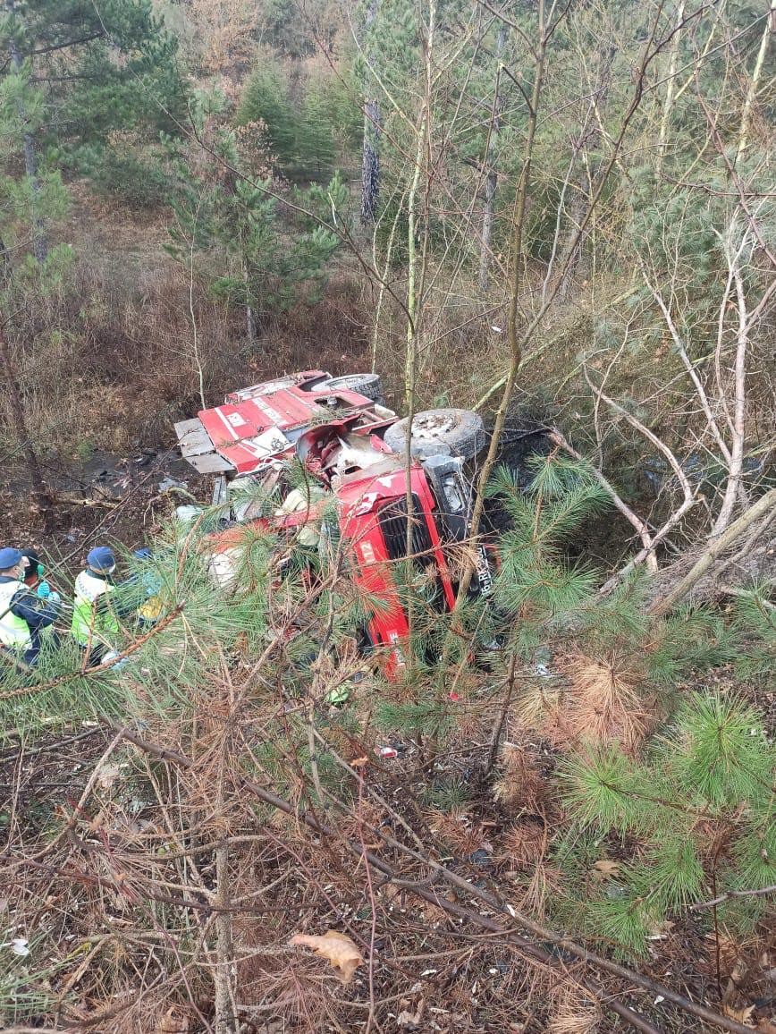 16 RK 960 plakalı itfaiye aracı ile kazaya müdahale etmek üzere yola koyulan 4 kişilik ekip Nalınlar Mahallesindeki orman deposuna bir kilometre kala kaza geçirdi.