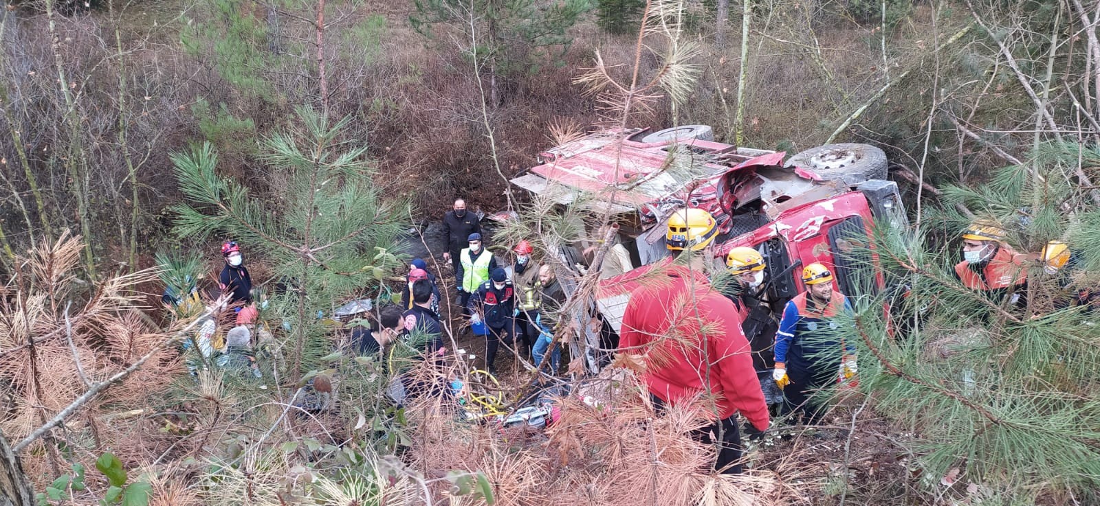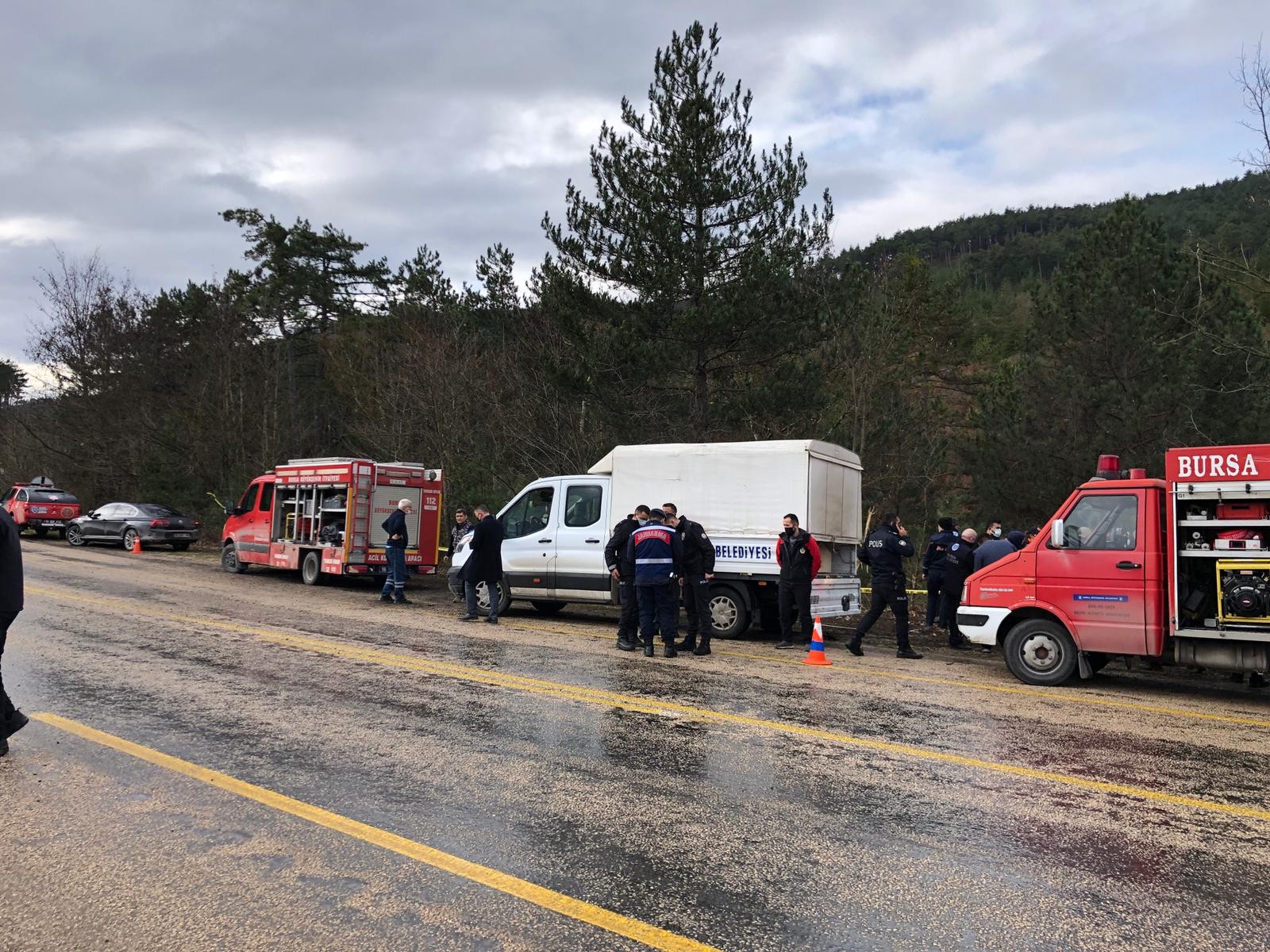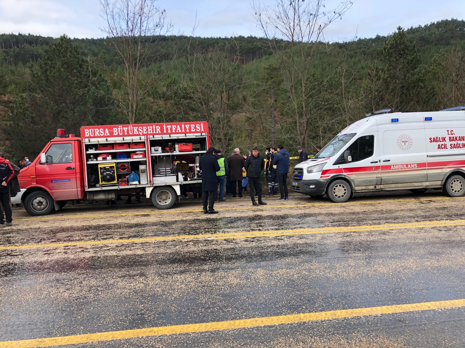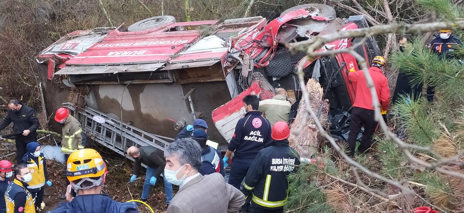 Bursa'nın Orhaneli ilçesinde meydana gelen trafik kazasına giden itfaiye ekipleri yolda kaza yaptı. Kaza sonucu devrilen itfaiye aracı içerisindeki dört itfaiye eri yaşamını yitirdi.