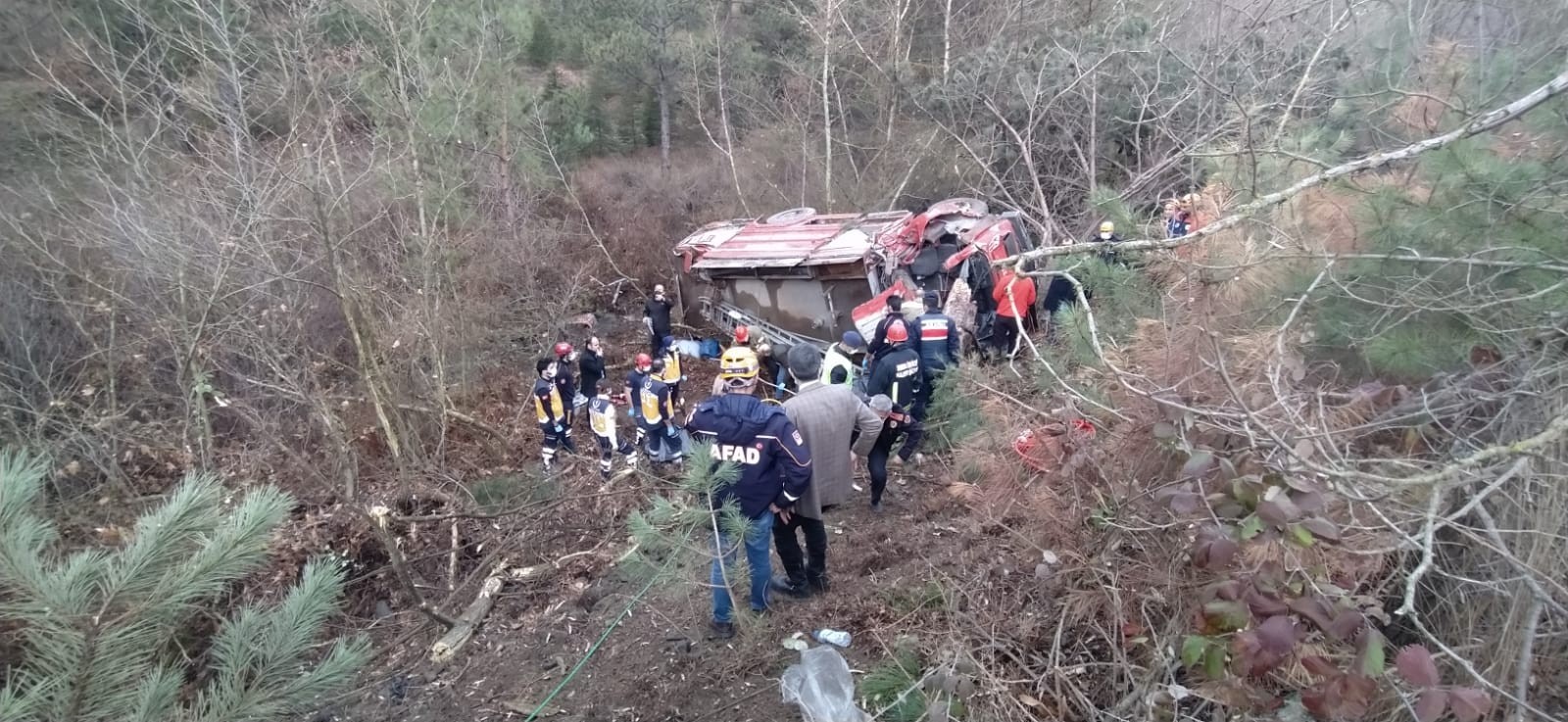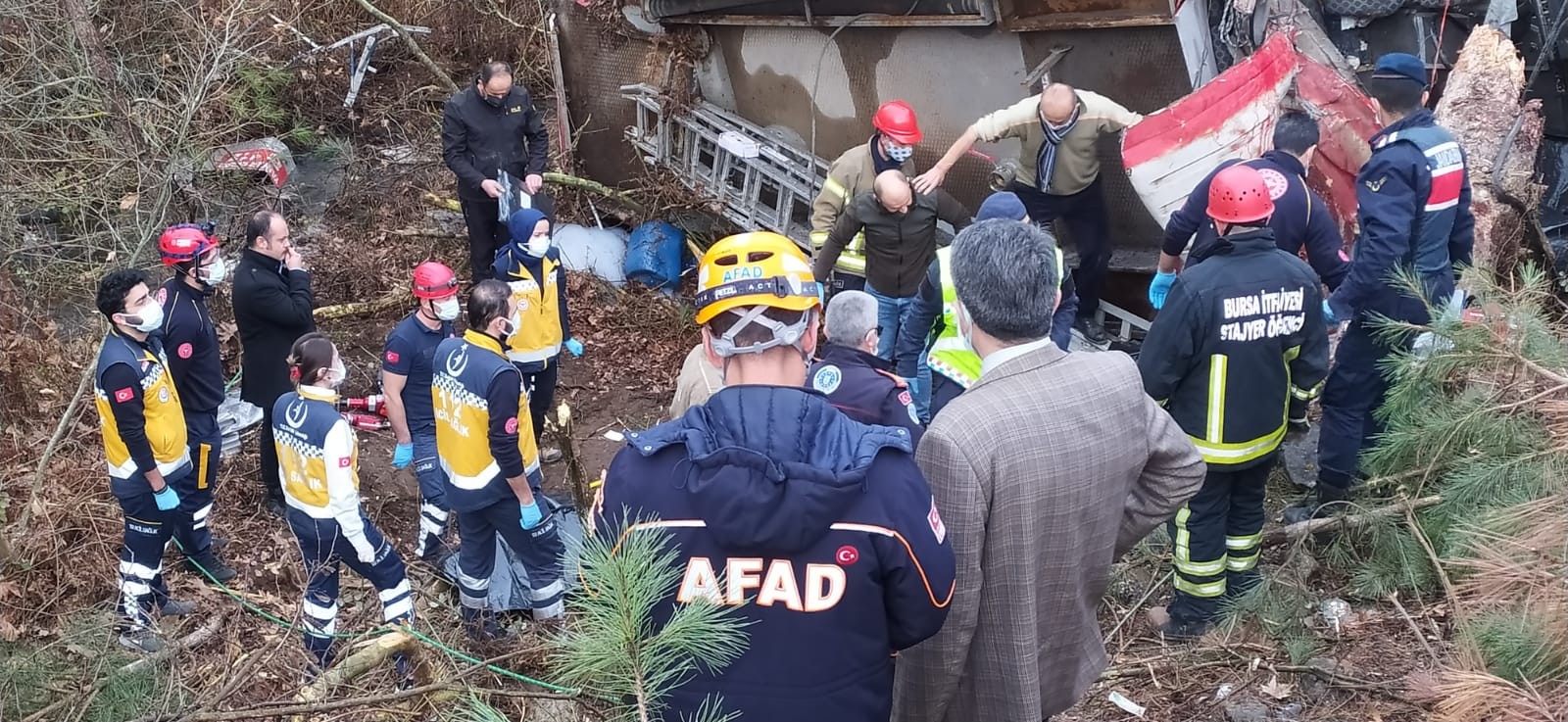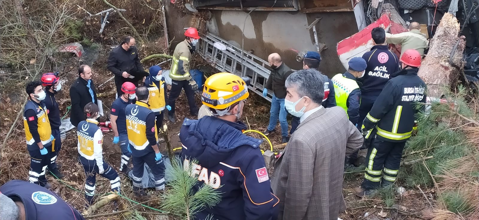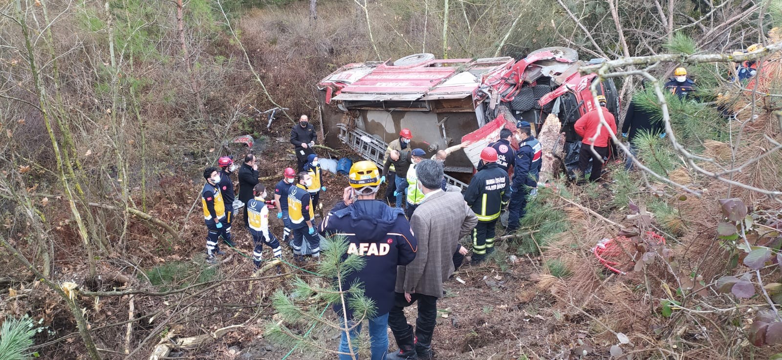 Bursa'nın Orhaneli ilçesinde meydana gelen trafik kazasına giden itfaiye ekipleri yolda kaza yaptı. Kaza sonucu devrilen itfaiye aracı içerisindeki dört itfaiye eri yaşamını yitirdi.