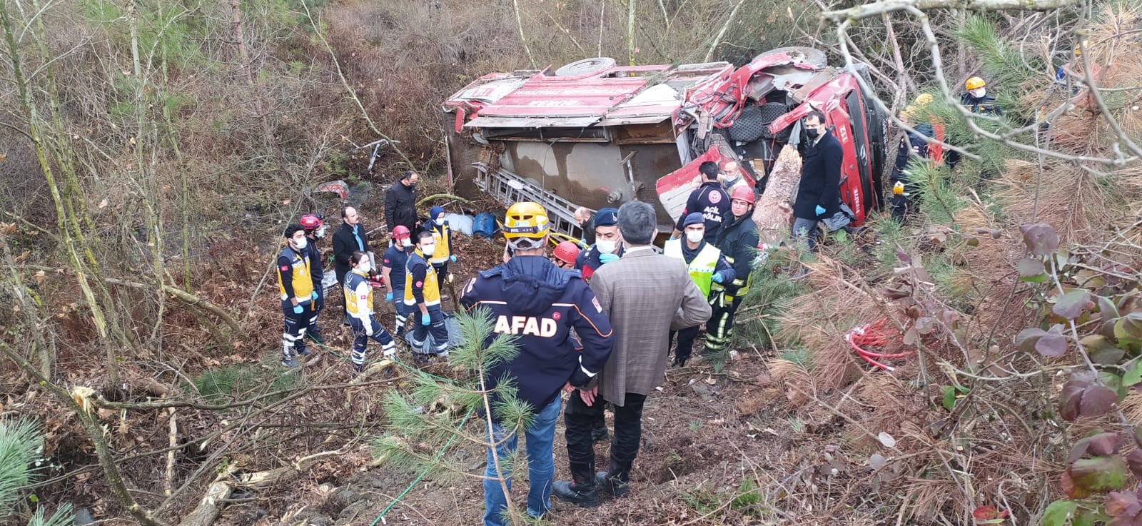 Kazada itfaiye çavuşu İsmail Kaya, itfaiye eri Sinan Amil, itfaiye destek personeli (şoför) Aydın Doğru, itfaiye destek personeli (şoför) Yunus Akşit hayatını kaybetti.