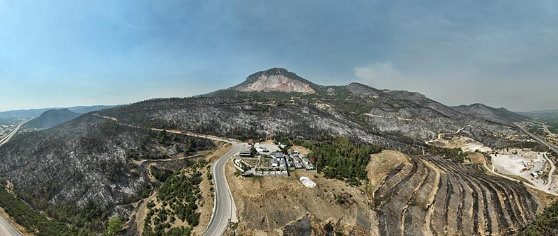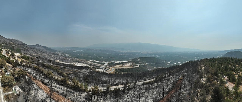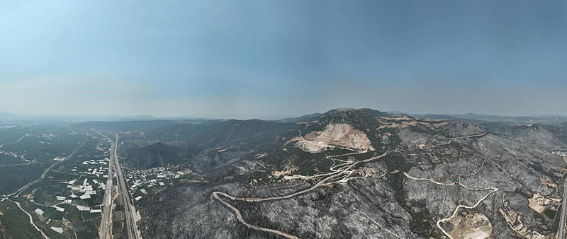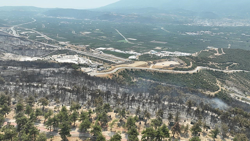 Gürsu'da 4 gündür devam eden ve güçlükle kontrol altına alınan ve ekiplerin soğutma çalışmaları halen süren yangınının etkileri havadan böyle görüntülendi.