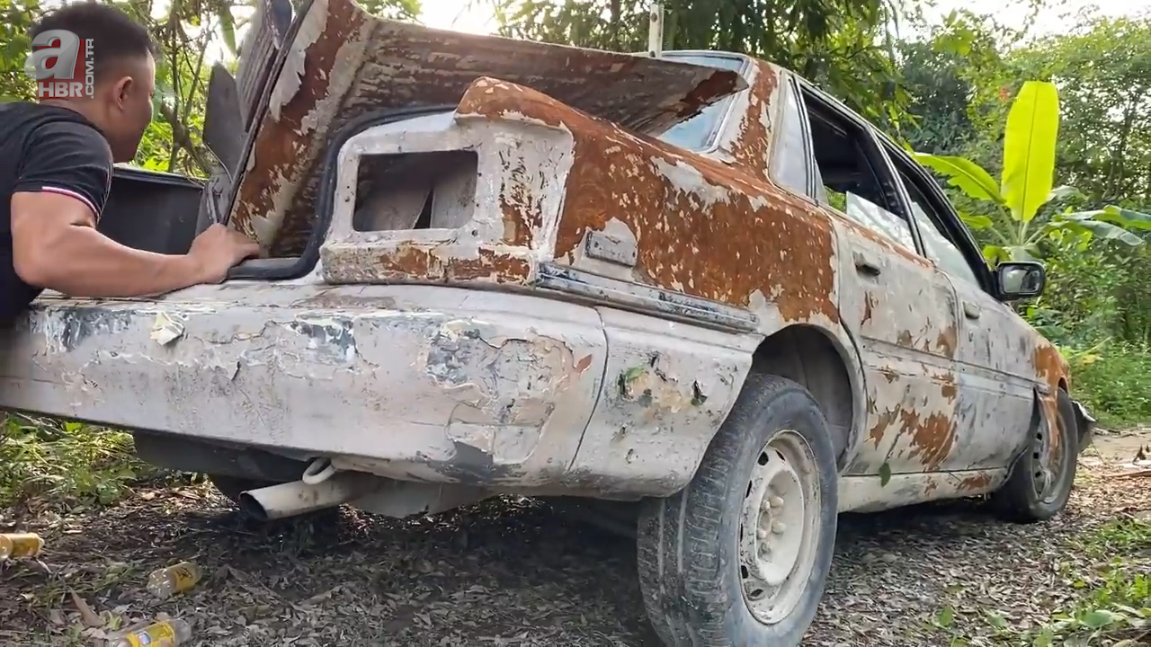 Çalıların arasına terk edilmiş arabayı garajında yeniledi! 1986 model otomobile bir de şimdi bakın