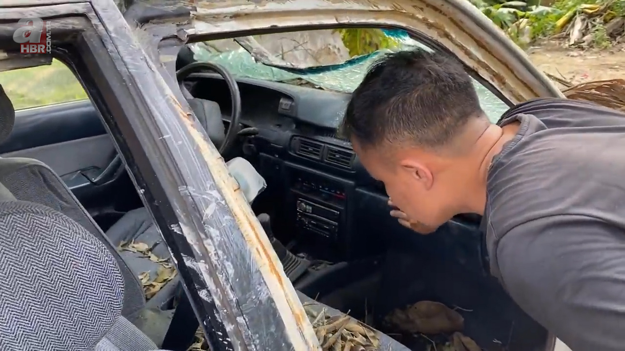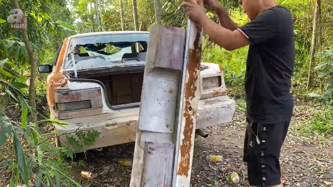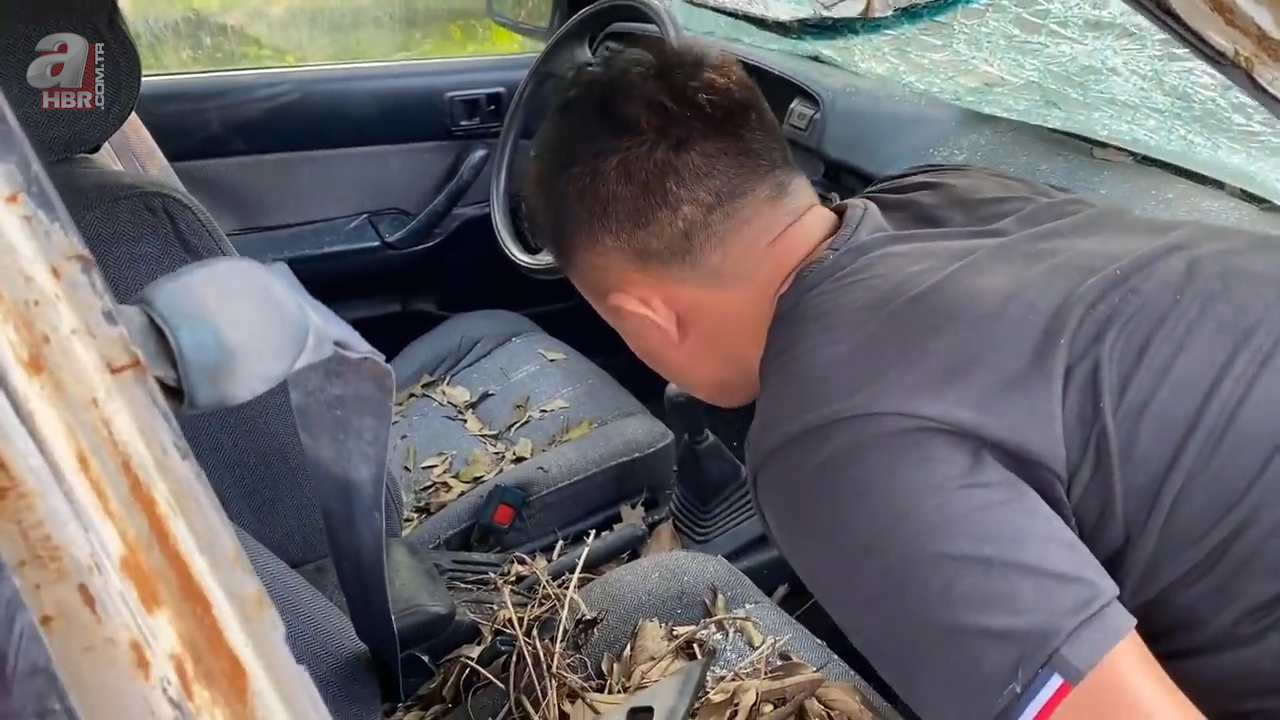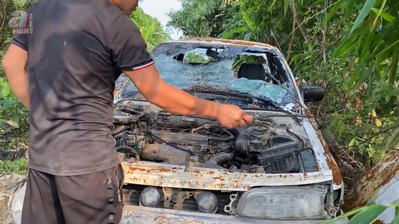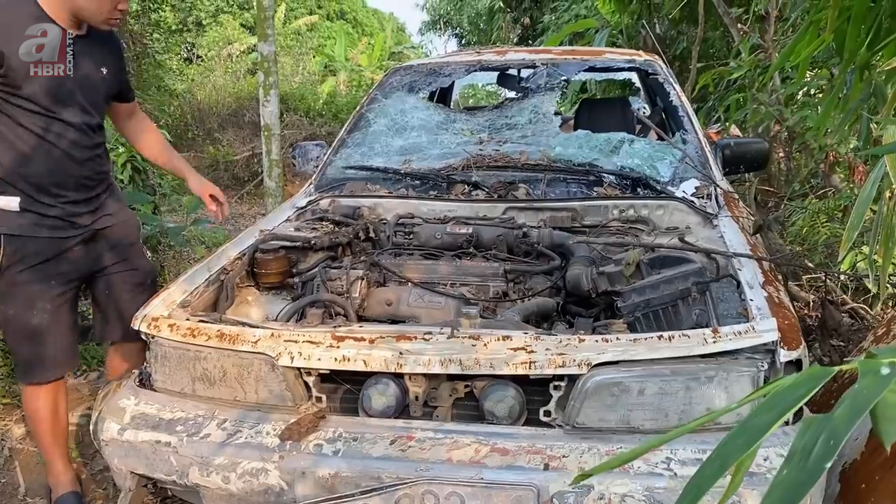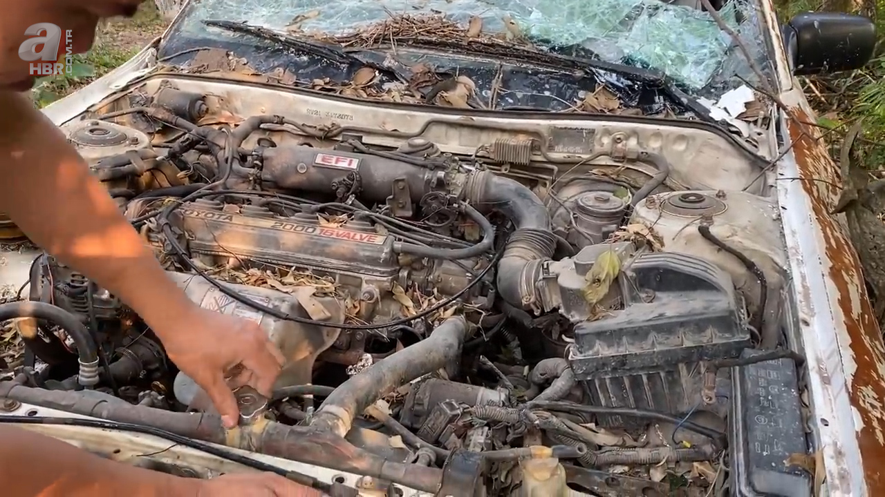 Çalıların arasında hurdaya ayrılmış ve terk edilmiş 1986 model Toyota Camry araba bulan kişi otomobili evine götürdü.
