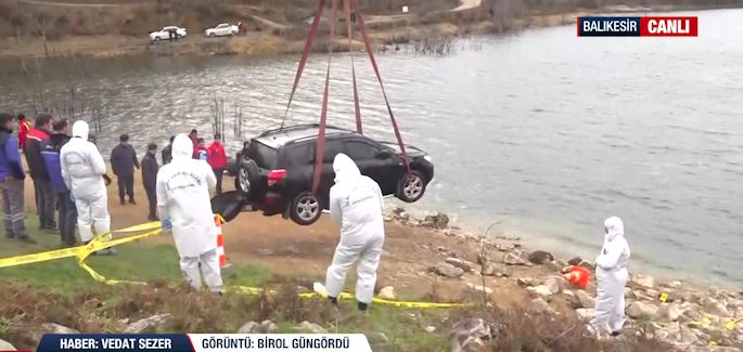 Balıkesir'de 27 Aralık gecesi erkek arkadaşıyla tartıştıktan sonra sırra kadem basan 34 yaşındaki Elif Kumal'dan acı haber geldi. Günlerdir havadan ve karadan yürütülen arama çalışmaları, Yukarıyapıcı Göleti'nde yoğunlaştı. Ankara'dan gelen özel JÖAK ekiplerinin sonar cihazıyla tespit ettiği araç, vinç yardımıyla sudan çıkarıldı. Talihsiz kadının cansız bedeni direksiyon başında bulunurken, olaydaki "kaza mı yoksa cinayet mi?" sorusu gizemini koruyor. Detayları A Haber muhabiri Vedat Sezer olay yerinden aktardı...