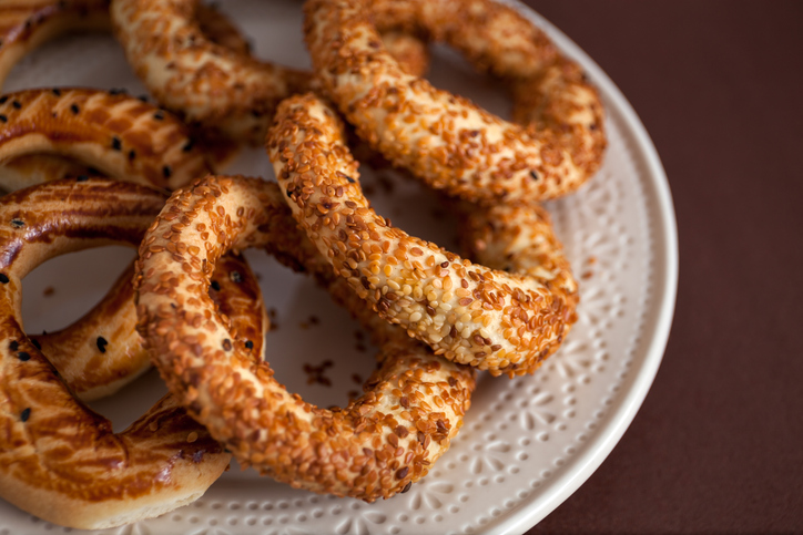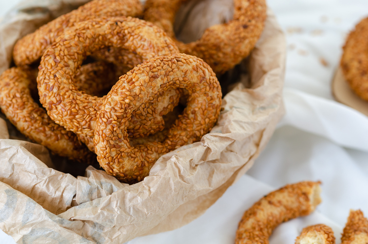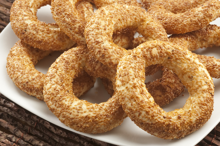 Elinizle hamura simit şekli verin ve önce yumurtaya batırıp sonra da susama bulayıp yağlı kağıt serilmiş tepsiye dizin. 180 dereceye ayarlanmış ve önceden ısıtılmış fırında pişirin.