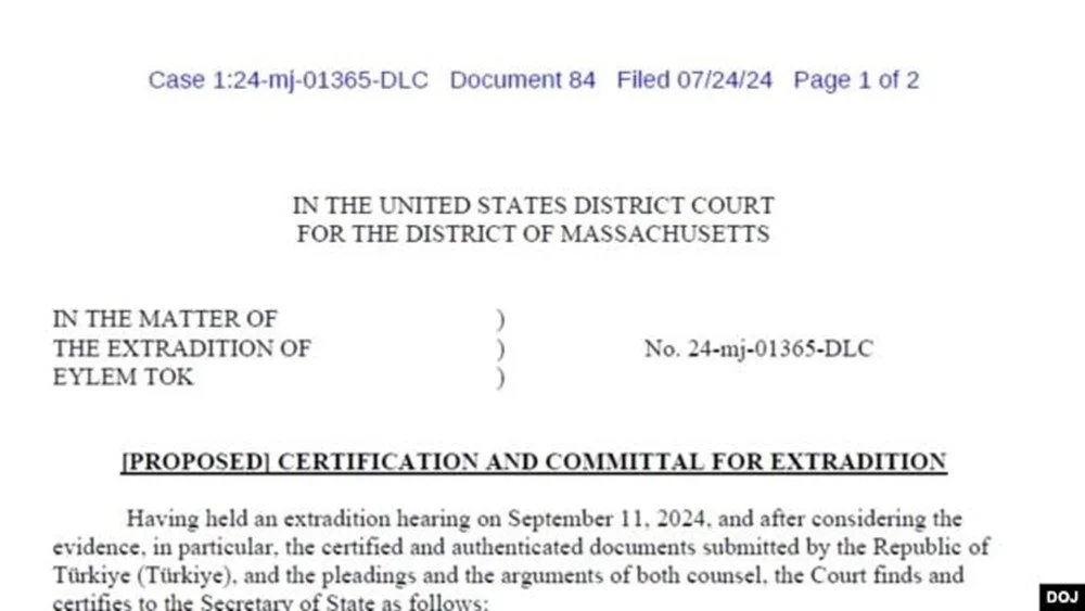 VOA'nın haberine göre, Massachusetts Bölge Başsavcı Yardımcısı Kristen A. Kearney, Eylem Tok'un 11 Eylül'de Boston'da yapılacak Türkiye'ye iadesiyle ilgili duruşması öncesinde, ABD Dışişleri Bakanlığı'nın iadeyi onaylaması için hazırladığı taslak karar metnini Hakim Donald Cabell'e sundu.