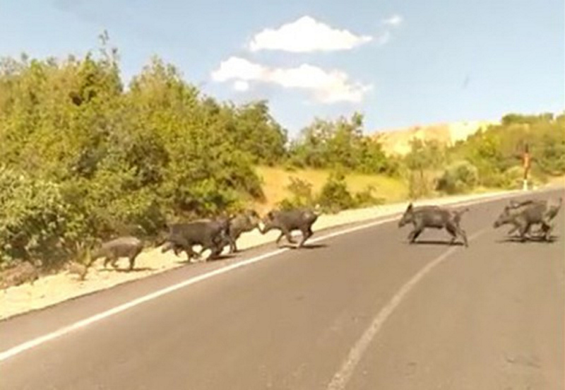 Domuz sürüsü köy sakinleri tarafından cep telefonu ile görüntülenirken, vatandaşlar ilk defa bu kadar kalabalık bir domuz sürüsüne rastladıklarını aktardı.