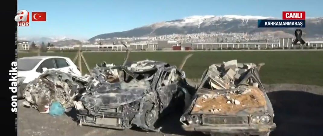 İki büyük depremin vurduğu Kahramanmaraş'ta enkaz yığınları altından çıkarılan araçlar bir noktada toplandı.