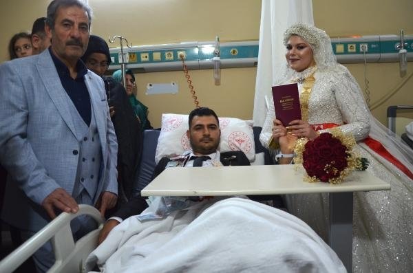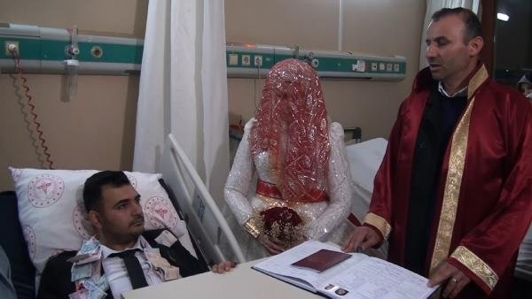 Şanlıurfa'da evlilik arifesinde olan Muhammed Yusuf Gülel nikah öncesi kaza geçirdi. İki ayağında da kırık tespit edilen Gülel nikahını hastanede kıydırdı.